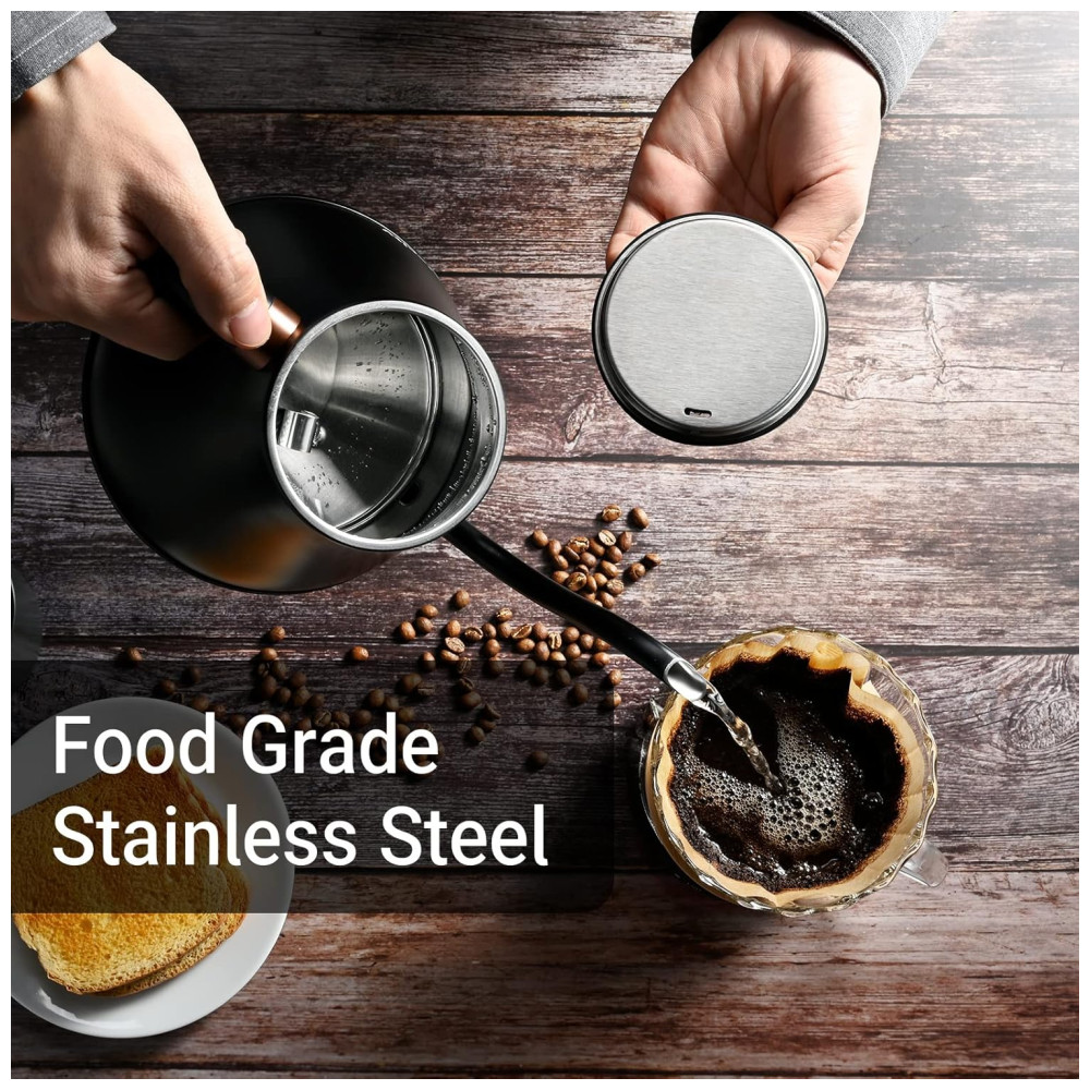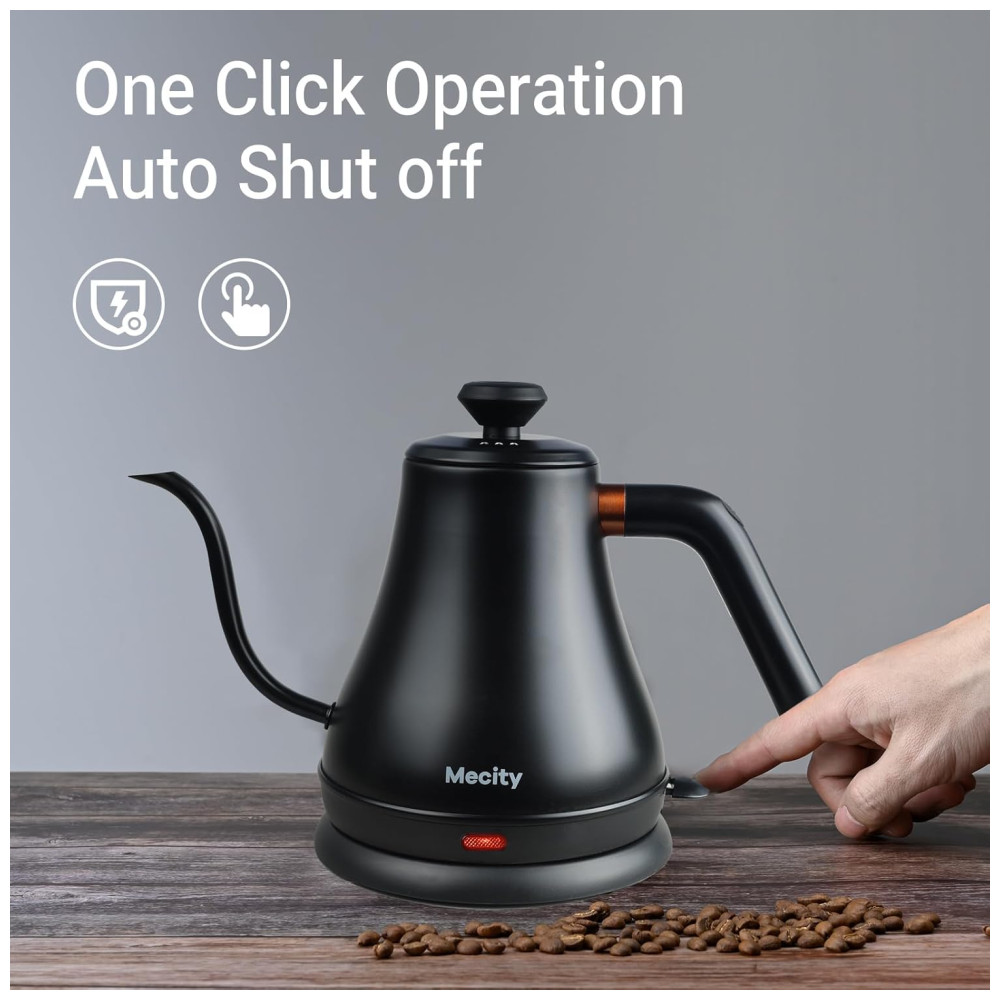Chaleira Elétrica 800mL de Aço Inoxidável com Bico de Ganso para Aquecimento Rápido e Desligamento Automático 1000W Mecity Preta