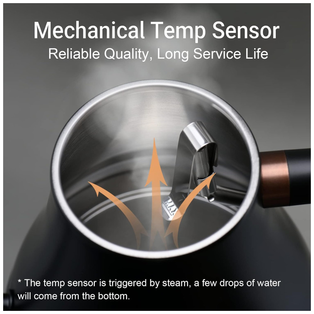 Durabilidade: Ao contrário de outras chaleiras elétricas feitas de plástico ou sensor de temperatura com fácil defeito, seu sensor de temperatura mecânico de aço inoxidável é mais confiável e durável, ampliando muito sua vida útil.