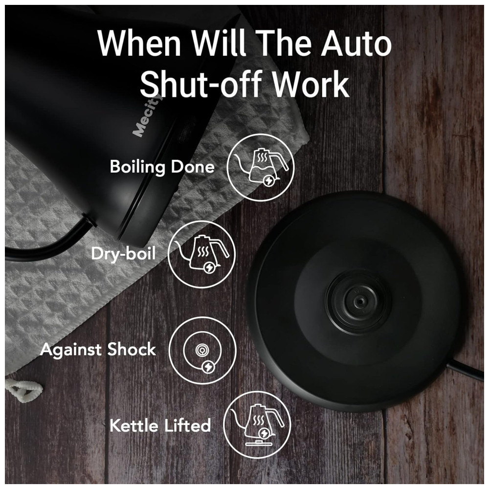 Fervura segura: a chaleira pescoço de ganso Mecity possui desligamento automático e recursos de proteção contra fervura a seco, você pode aquecer água de forma rápida e fácil para sua bebida quente favorita sem o incômodo de um fogão ou chaleira tradicional.