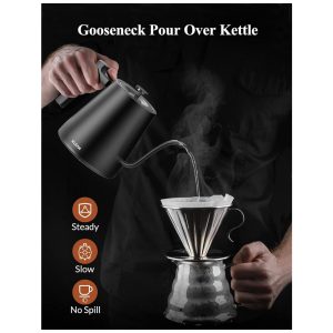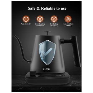 e confiável de usar a chaleira elétrica gooseneck usa tecnologia de termostato, com desligamento automático, proteção contra fervura e proteção contra superaquecimento.