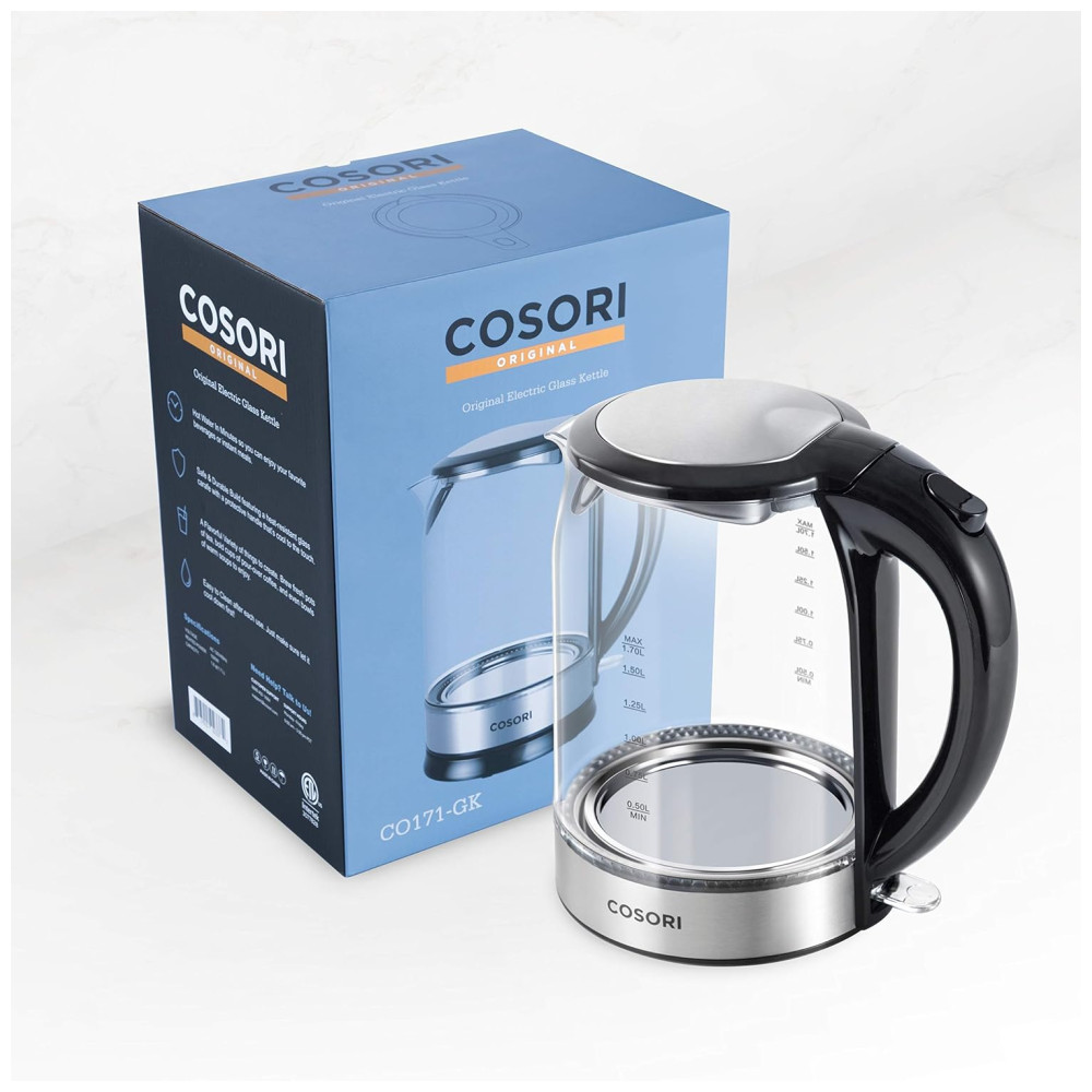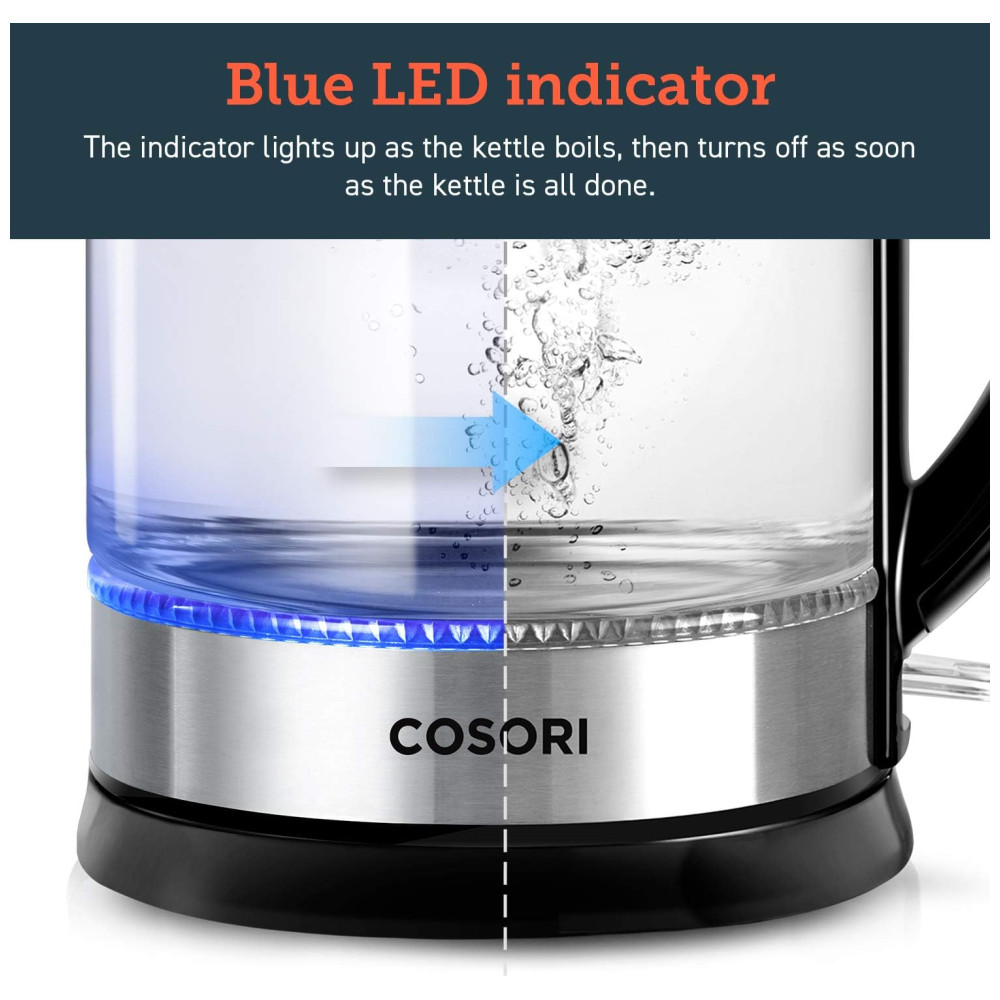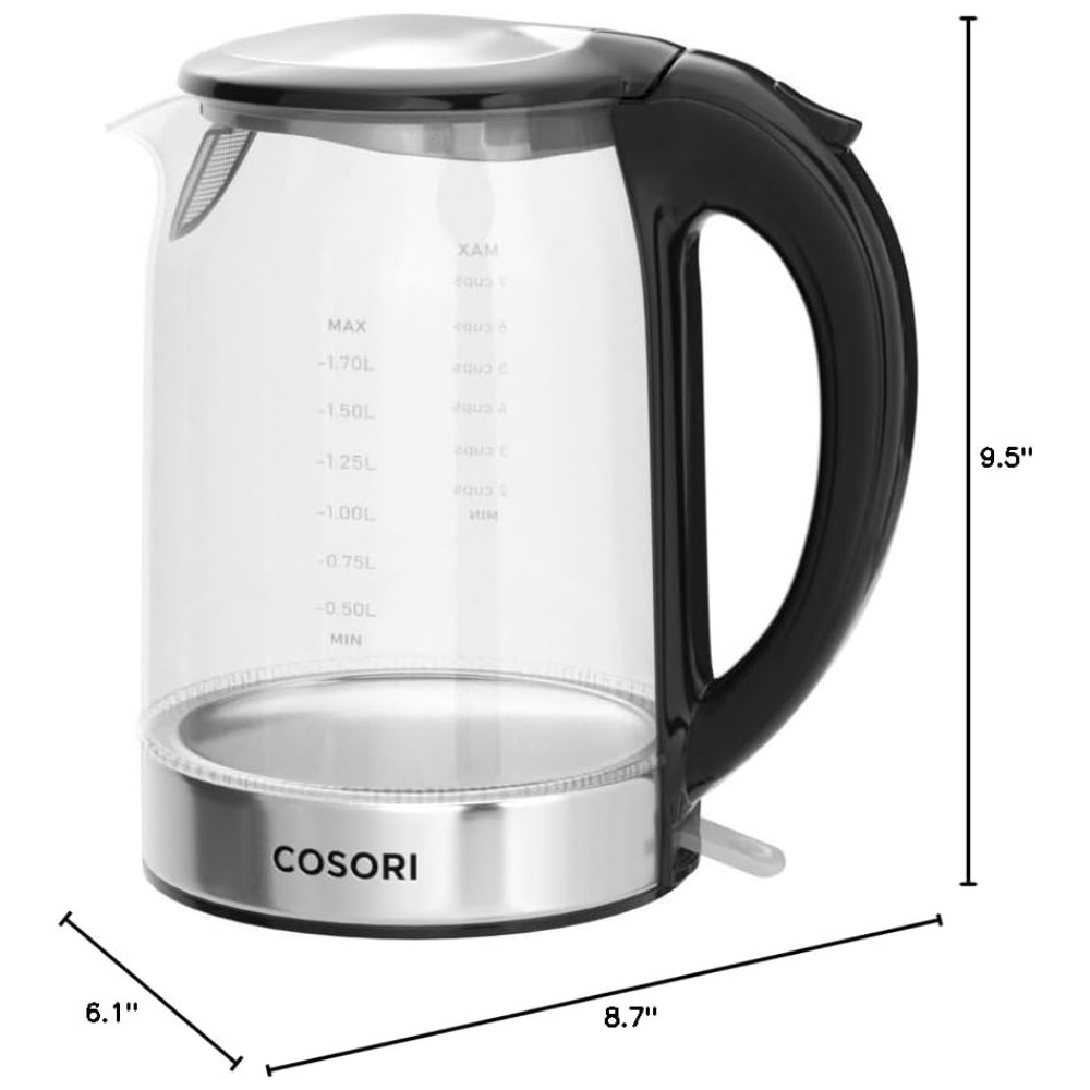 Chaleira elétrica COSORI Speed-Boil vidro borosilicato inox 17L 1500W 110V desligamento automático proteção seca LED preta