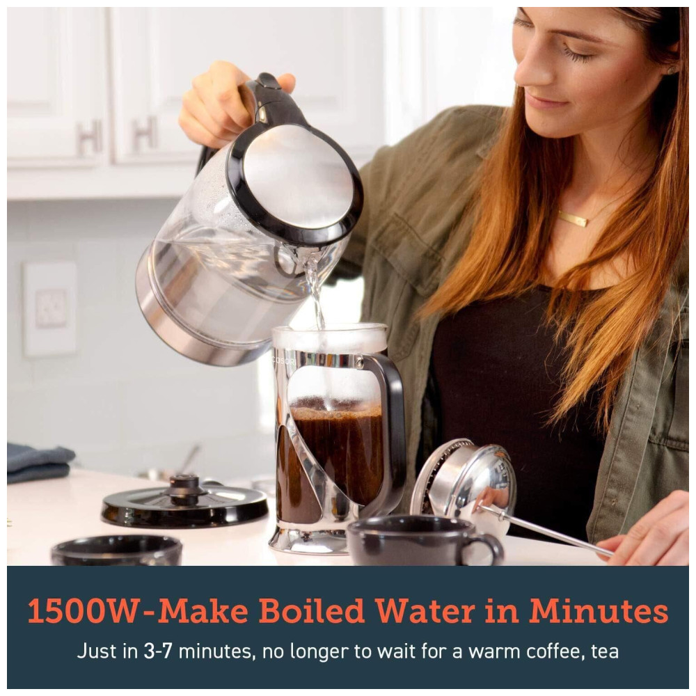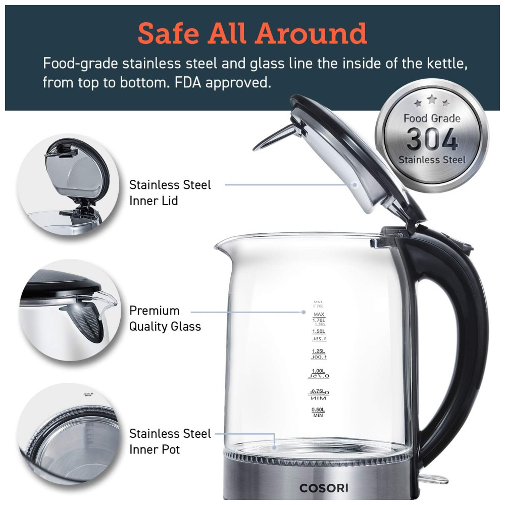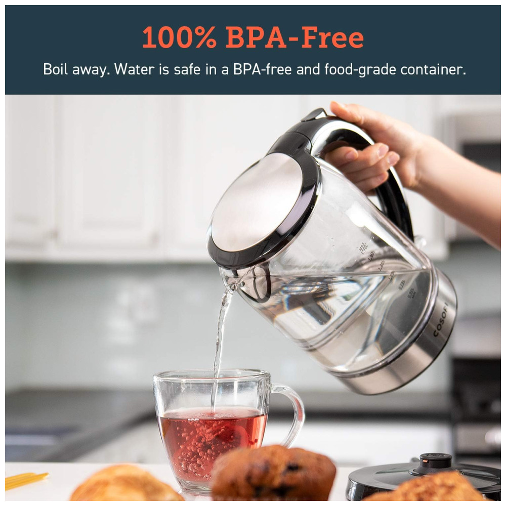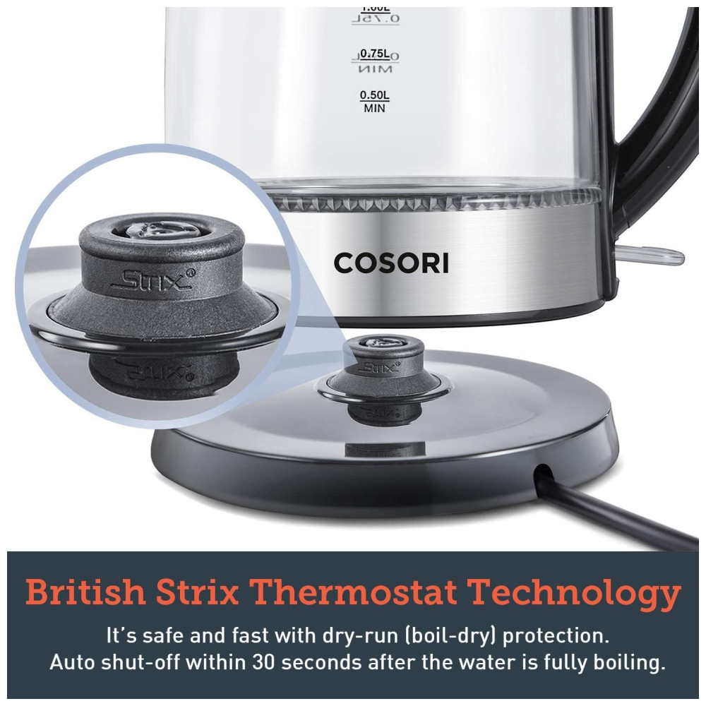 Chaleira elétrica COSORI Speed-Boil vidro borosilicato inox 17L 1500W 110V desligamento automático proteção seca LED preta