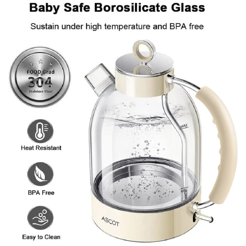Chaleira Elétrica ASCOT 17 Litros com Jarra de Vidro e Desligamento Automático 1500W 110V Creme