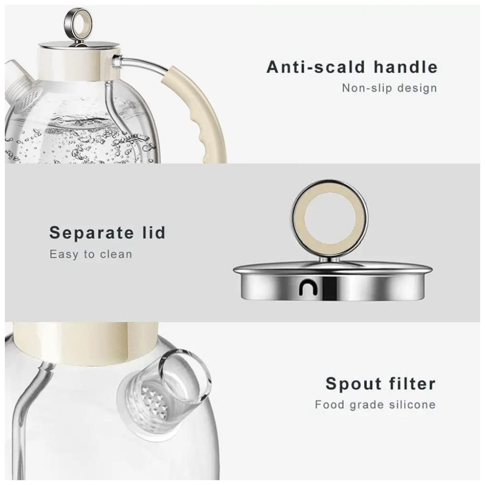O SABOR MAIS PURO Feito de vidro de borosilicato da melhor qualidade que resiste a arranhões e arranhões, nenhum plástico toca a água fervente no interior, incluindo a tampa, ao contrário de outras chaleiras, use plástico para a tampa interna o filtro é feito de aço inoxidável e 100 BPA plástico grátis