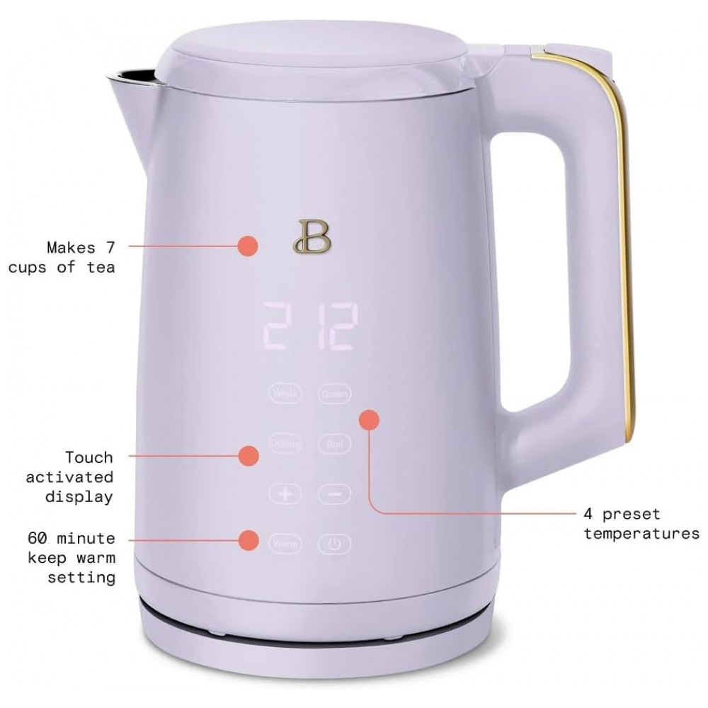 Chaleira elétrica Beautiful 17L lavanda com display touch 4 programas de temperatura modo manter aquecido 1500W 110V