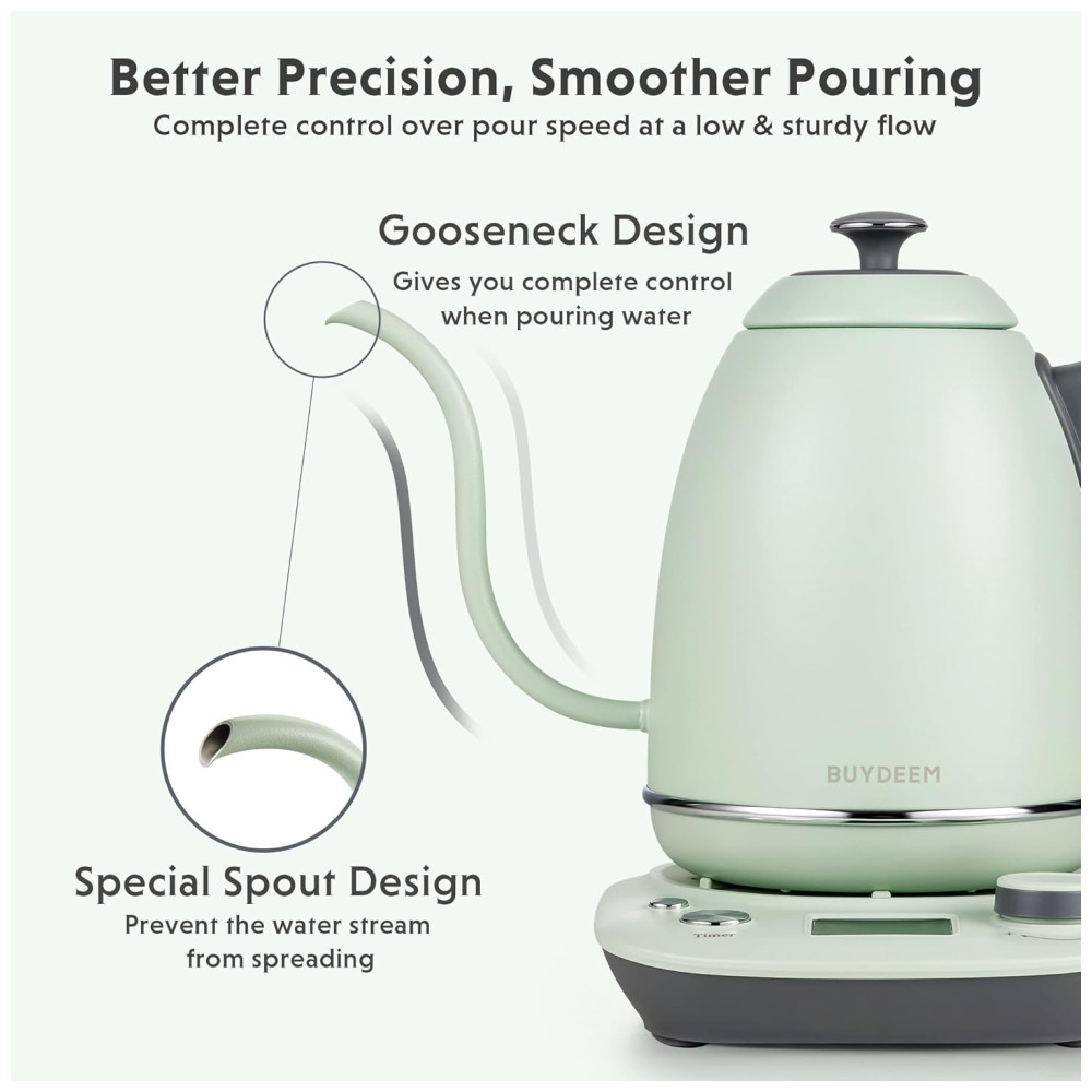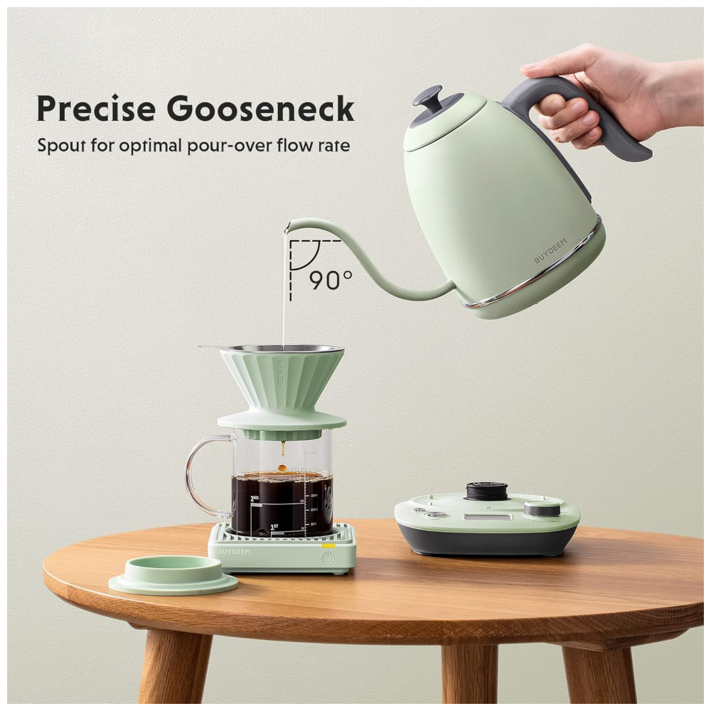Despejo preciso sem esforço Um design exclusivo de pescoço de ganso de chaleira elétrica com curvatura perfeita para lento e oferece controle da taxa de fluxo. Ele permite que você despeje a quantidade exata de água que você precisa facilmente. Use o conjunto de gotejadores de café BUYDEEM para facilitar a preparação do café.
