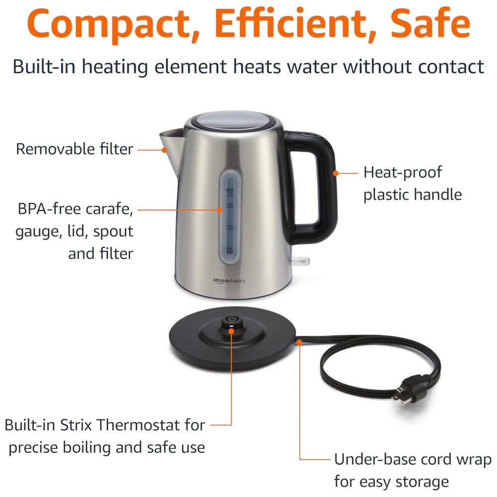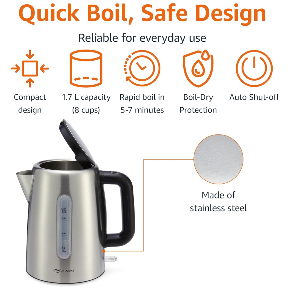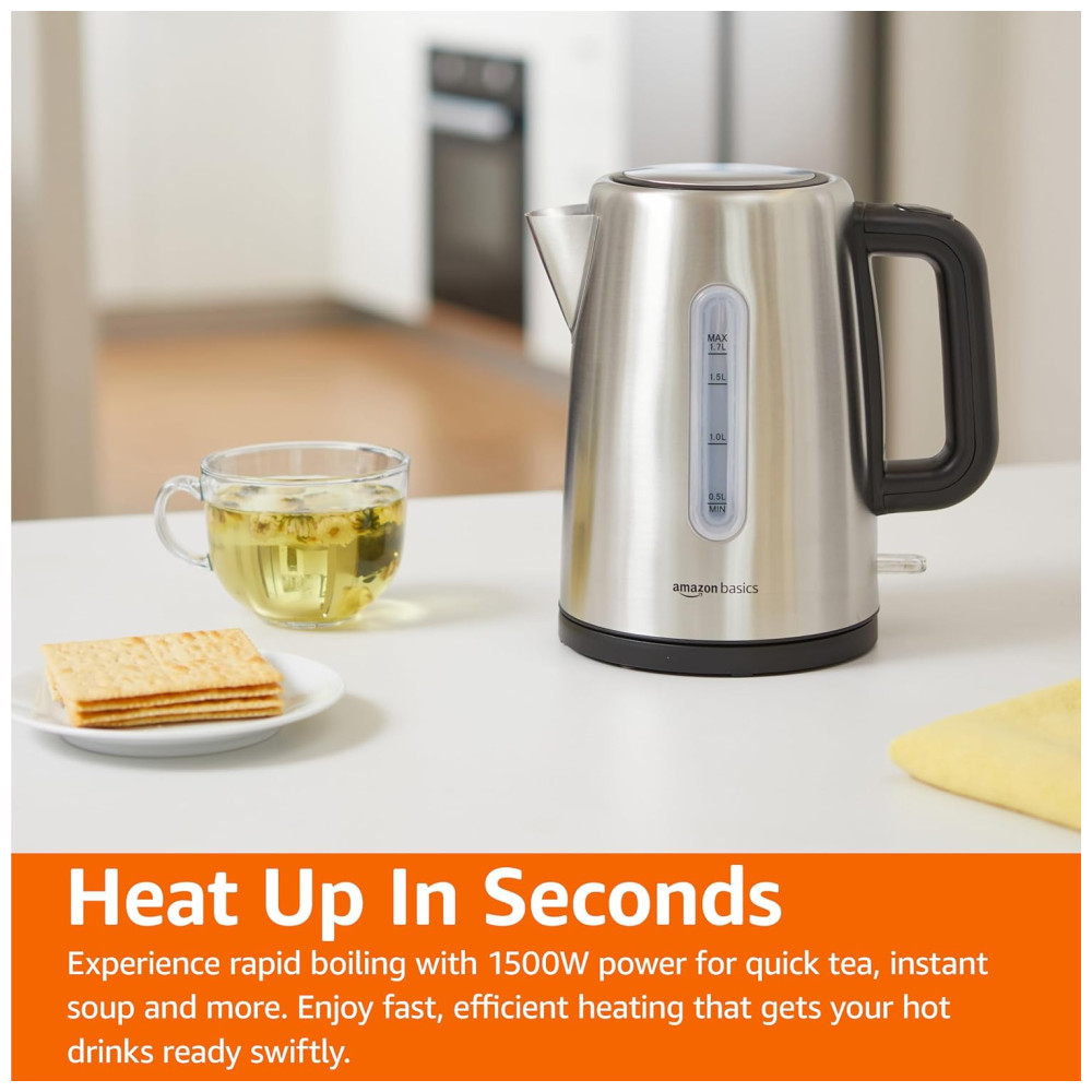 Chaleira elétrica de aço inoxidável de 1,7 litros , 1500 watts para ferver água rapidamente