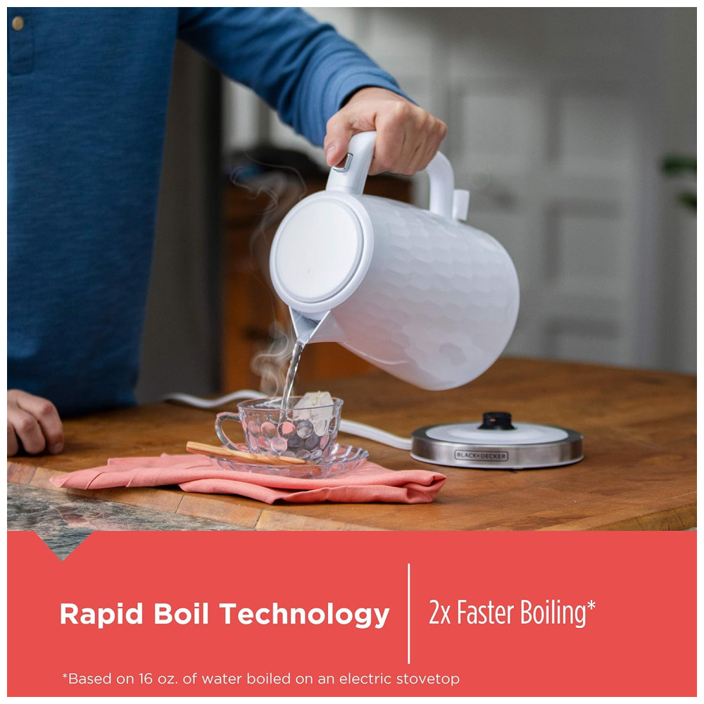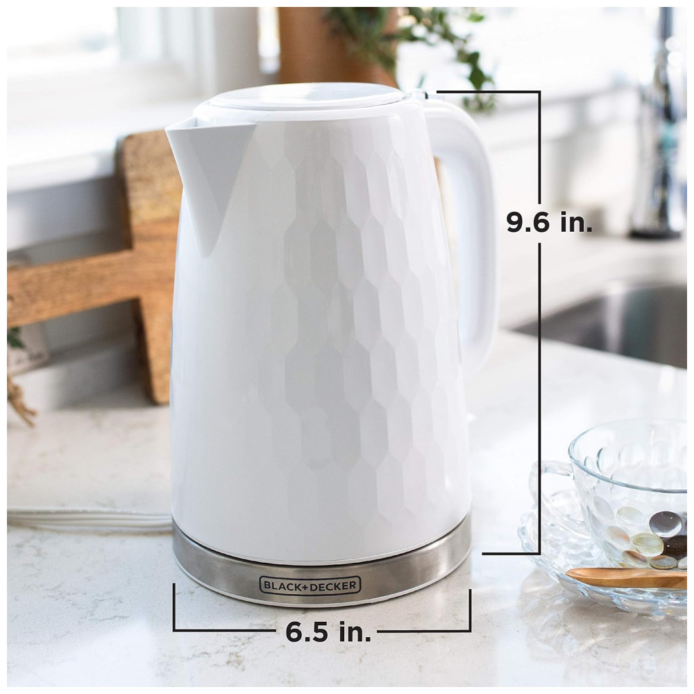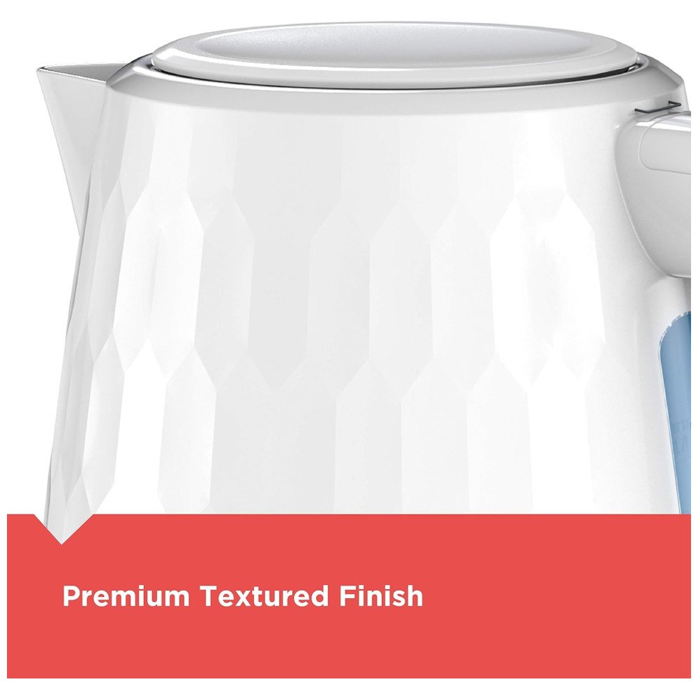 Chaleira elétrica de 1.7L com acabamento texturizado Premium esta chaleira de alto desempenho faz parte da coleção Honeycomb, apresentando um acabamento texturizado premium e detalhes em aço inoxidável para uma adição atraente à sua cozinha.
