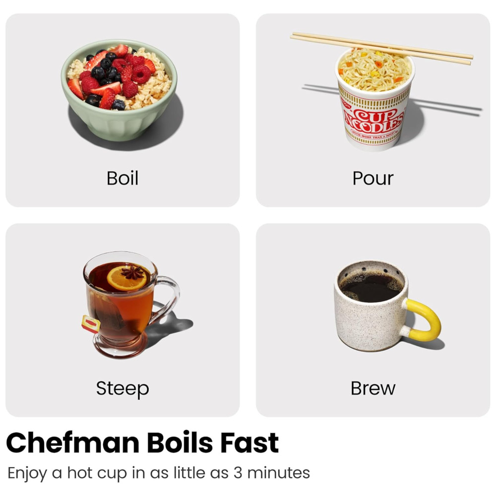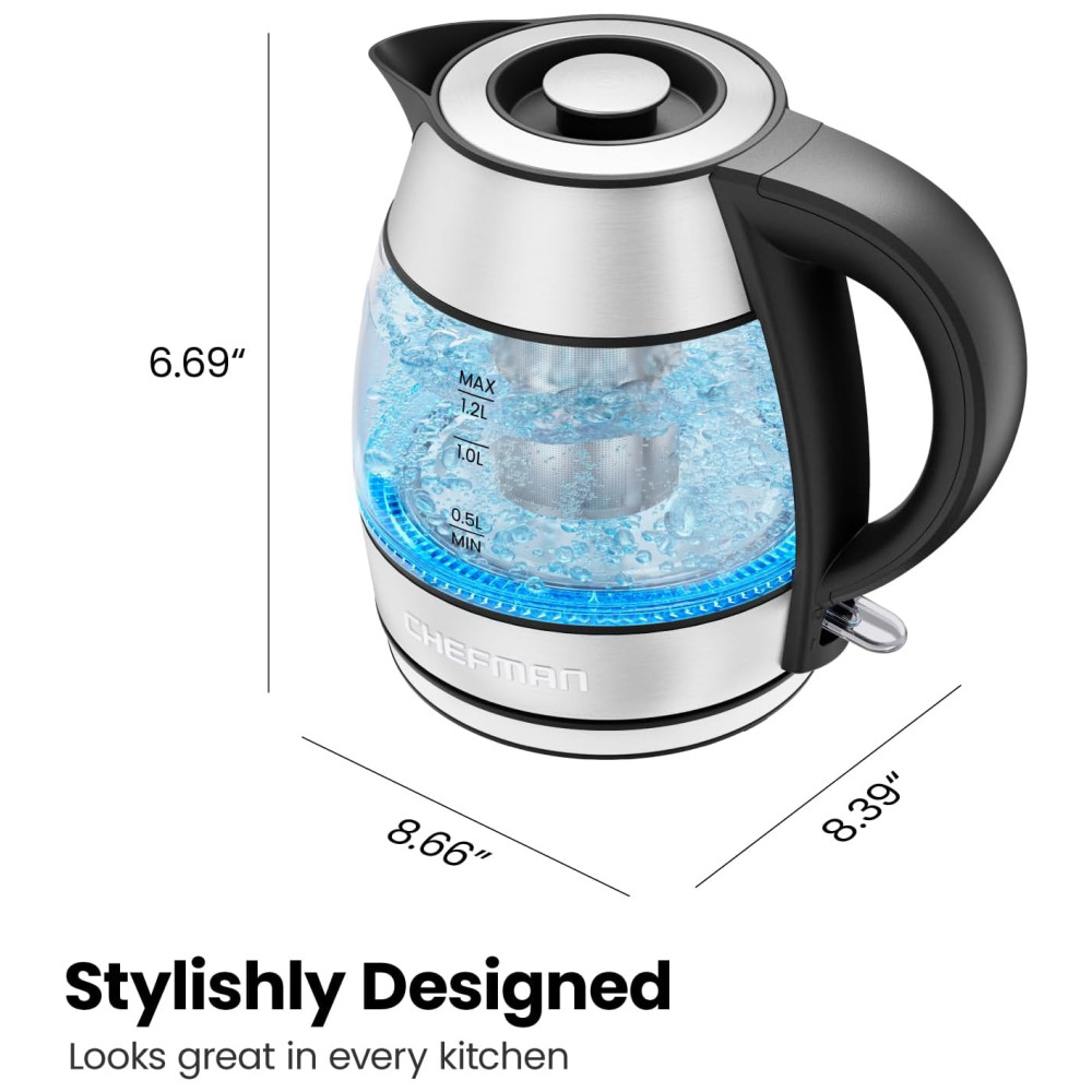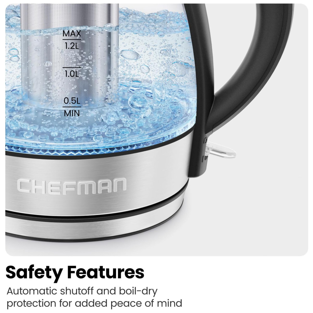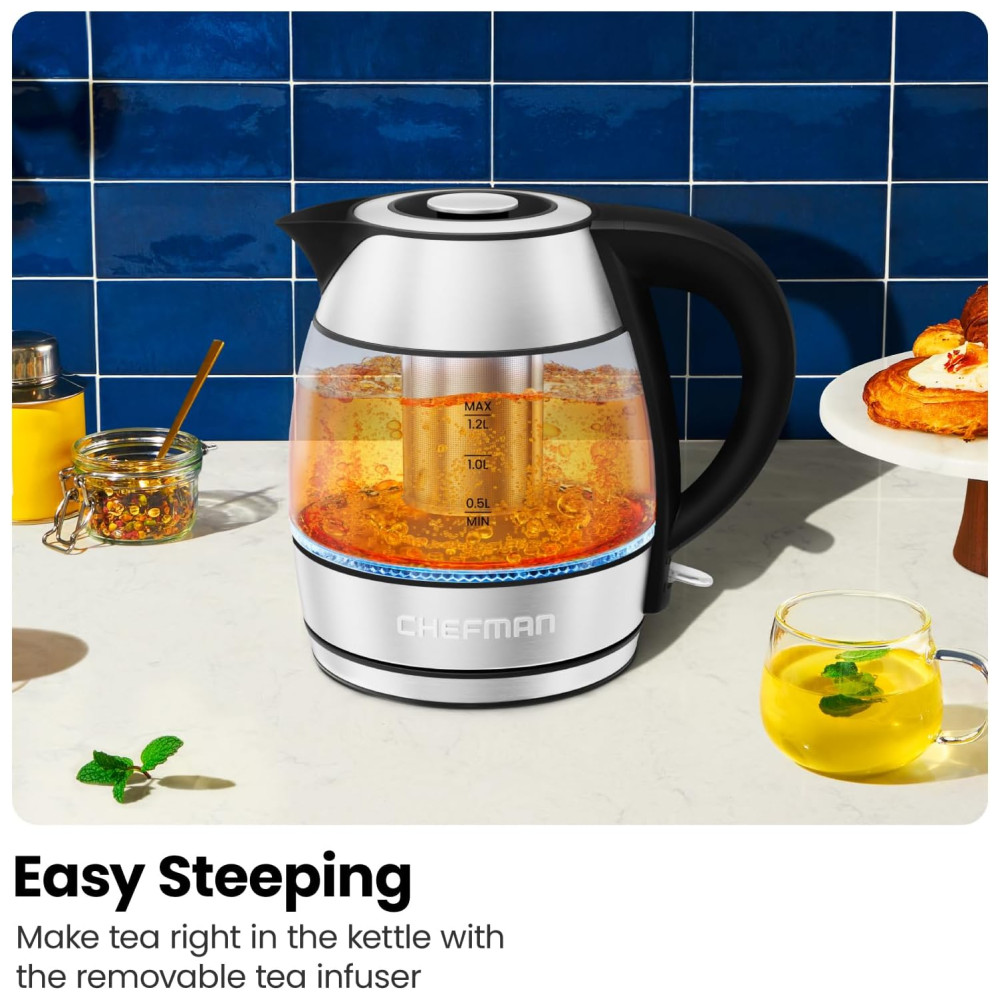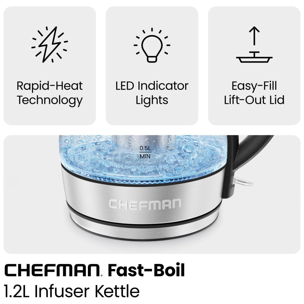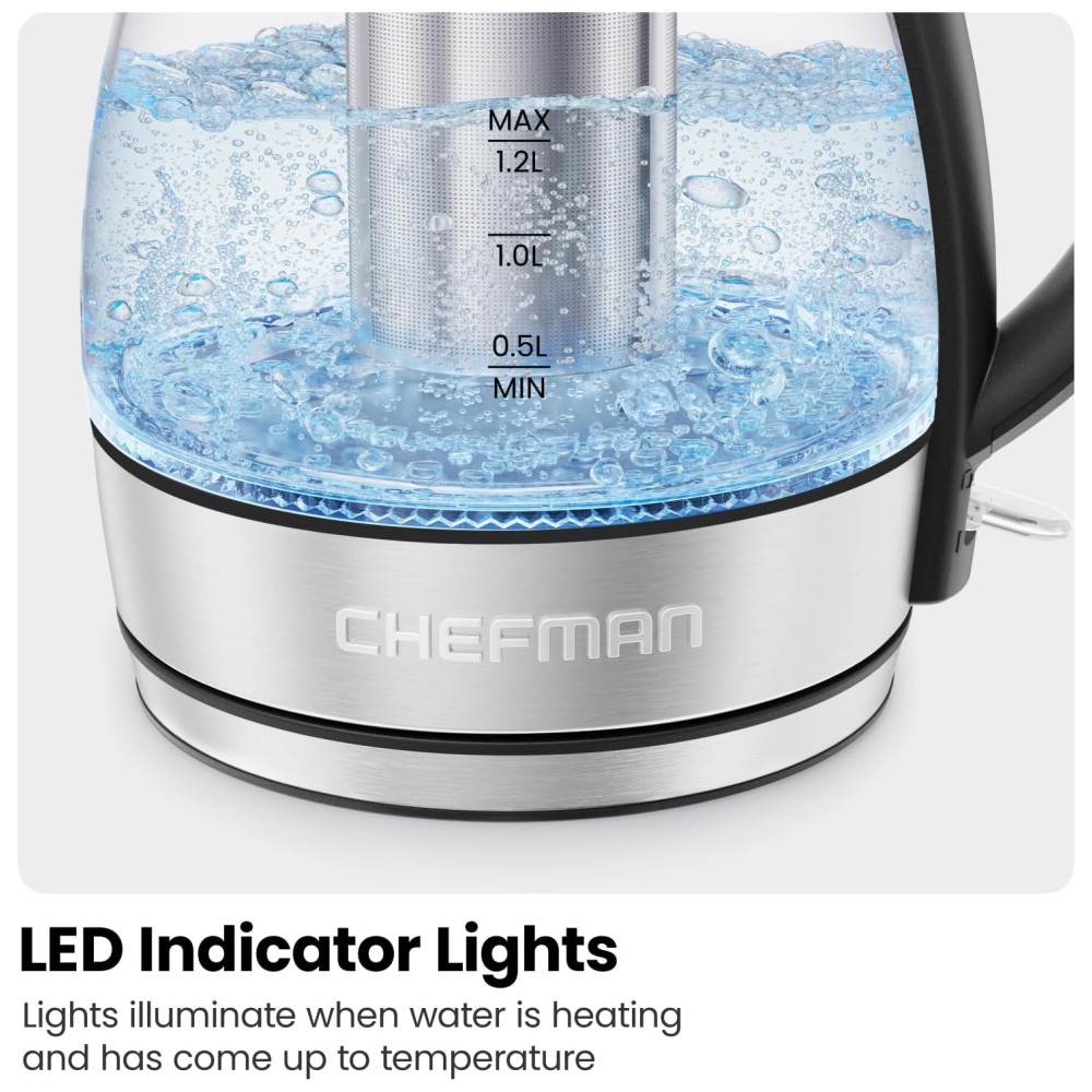Chaleira Elétrica CHEFMAN 1.2L 1500W para Chá com Infusor de Inox Desligamento Automático Proteção contra Fervura a Seco e Luz LED