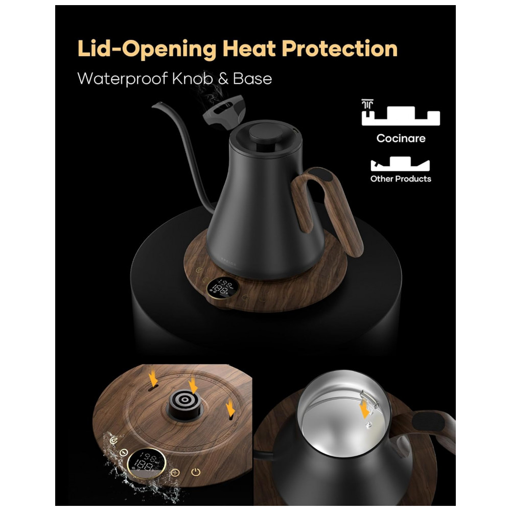 Chaleira elétrica Cocinare FLOW B9 Obsidian Black 09L bico pescoço de ganso controle de temperatura 1500W 110V