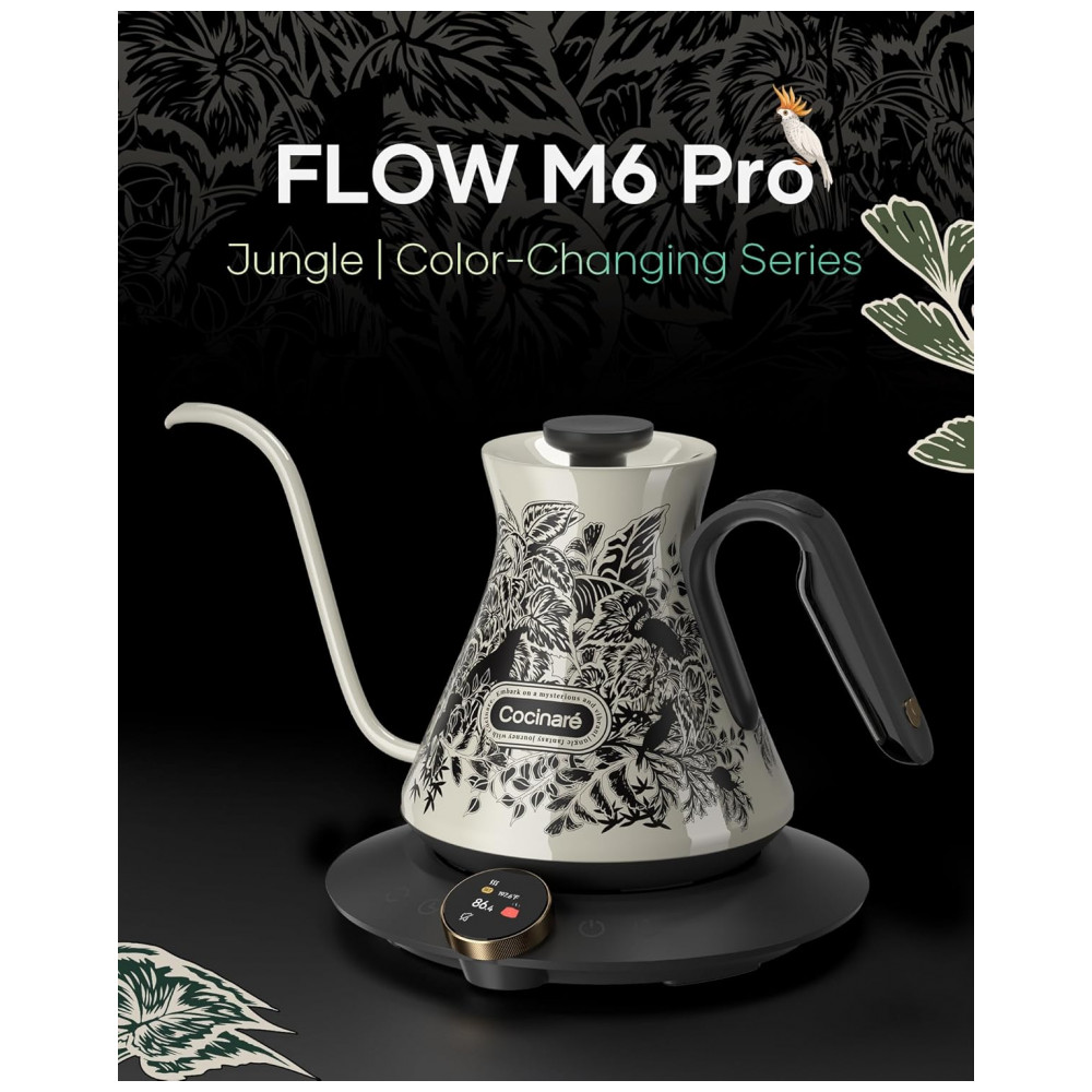 Chaleira elétrica Cocinare FLOW M6 Pro Jungle 06L bico pescoço de ganso controle de temperatura 1500W 110V