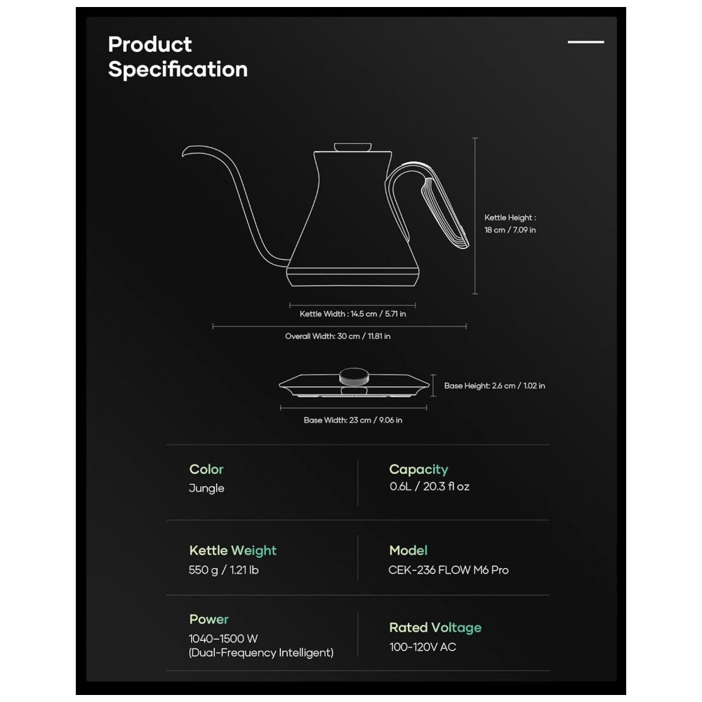 Modelo: CEK-236 FLOW M6 Pro Electric Kettle Jungle