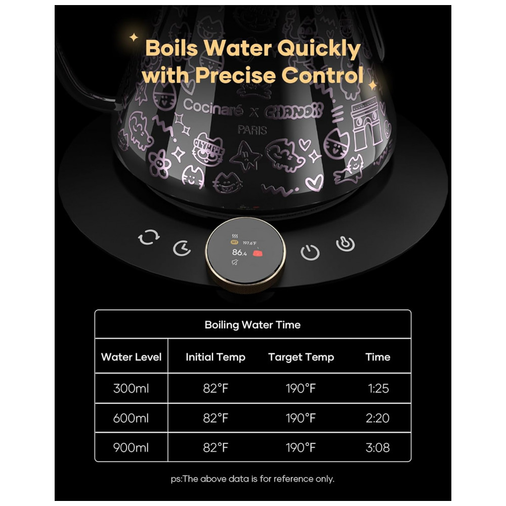 Chaleira elétrica Cocinare FLOW M9 Pro Chanoir preta 09L bico pescoço de ganso controle de temperatura 1200W 110V