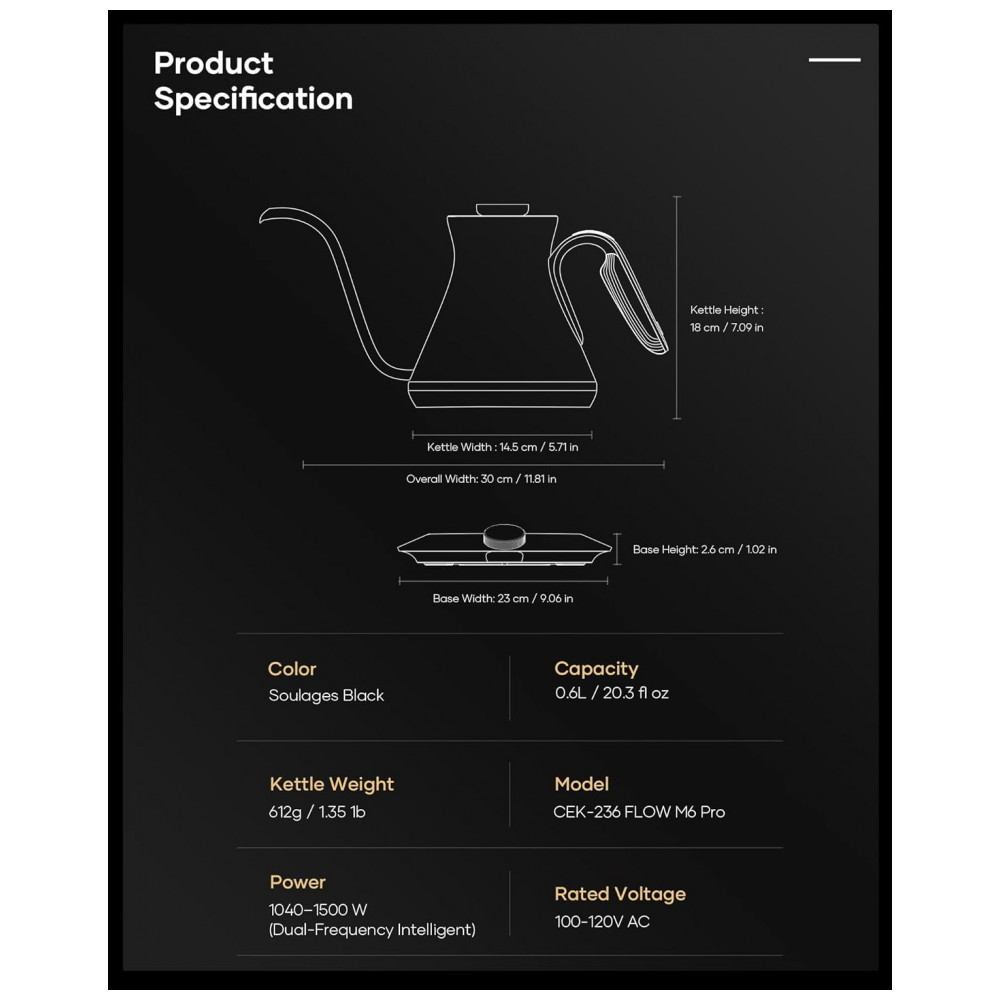 Modelo: CEK-236 FLOW M6 Pro Electric Kettle Soulages