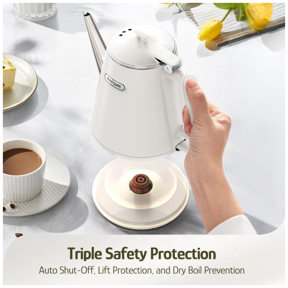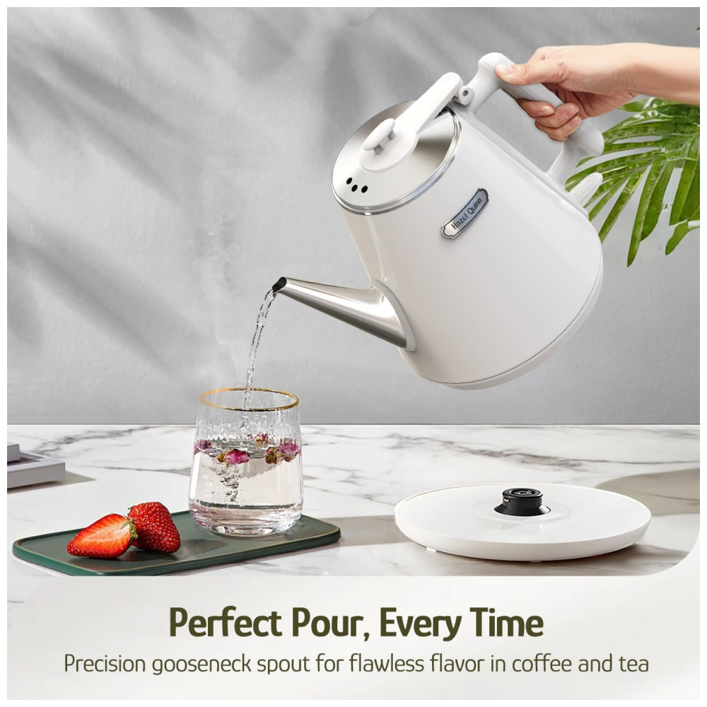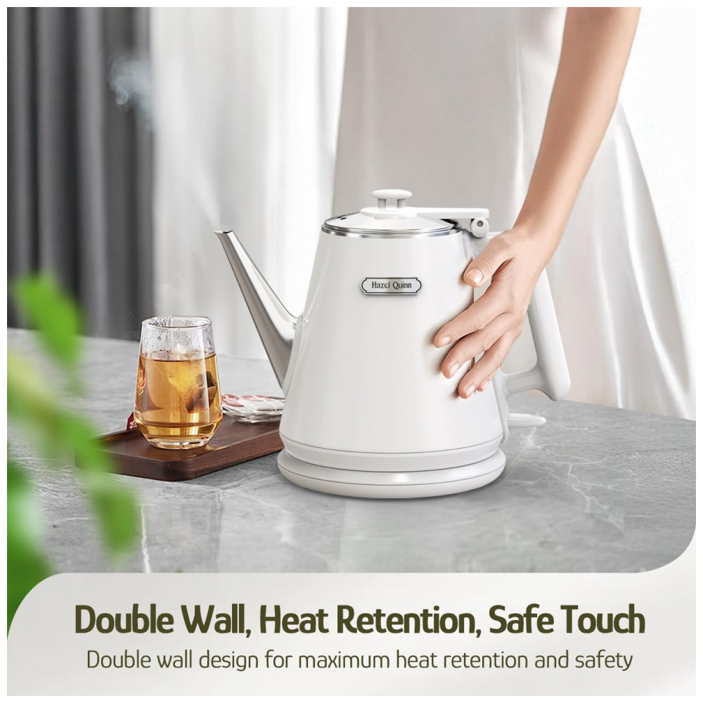 Chaleira elétrica compacta Hazel Quinn 1L inox 304 dupla parede 800W toque frio Pearl White 110V