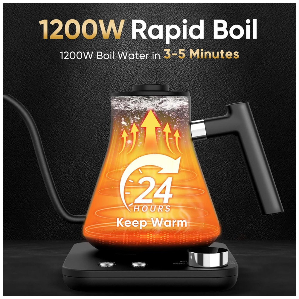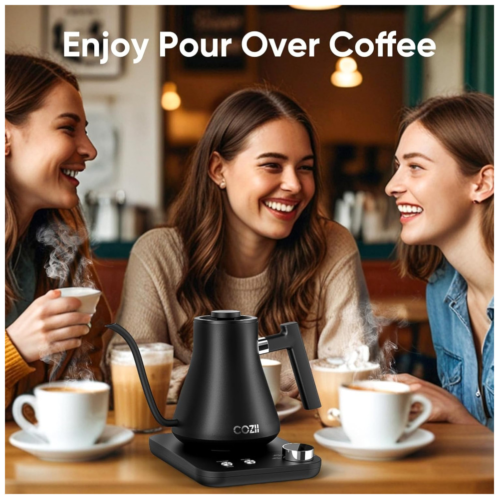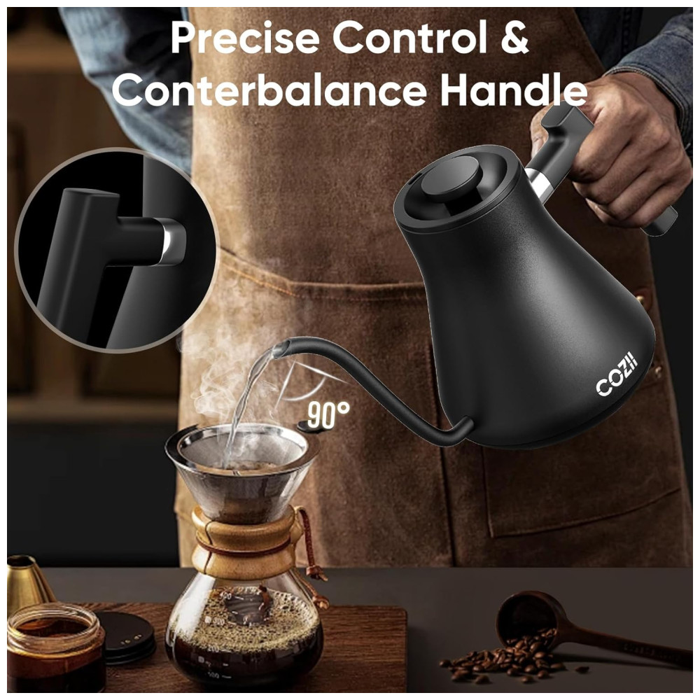 Chaleira Elétrica COZII Gooseneck 5 Programas 1 Controle de Temperatura 1200W Fervura Rápida de Água p/ Café e Chá 24h de Manutenção Quente