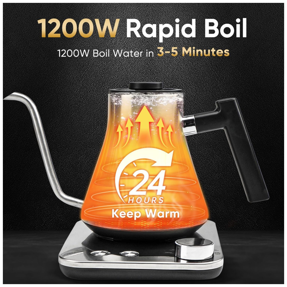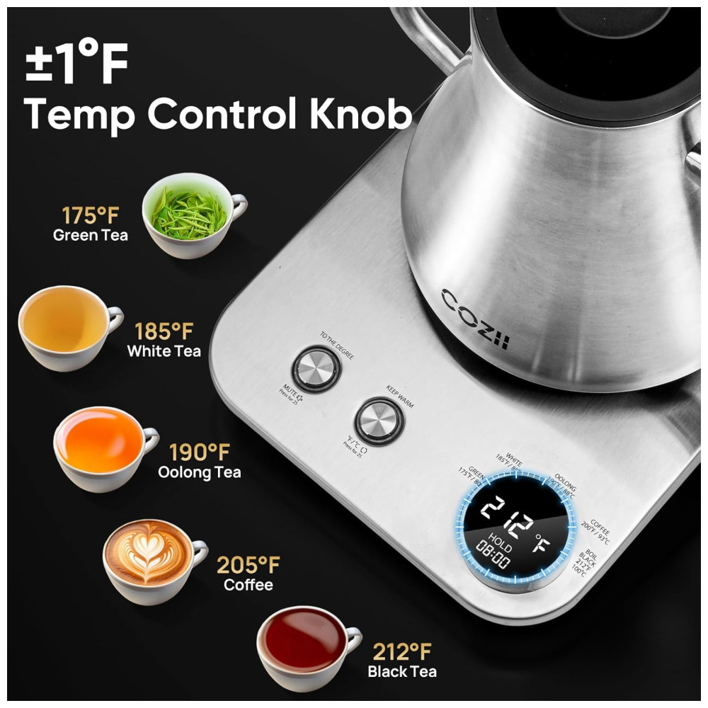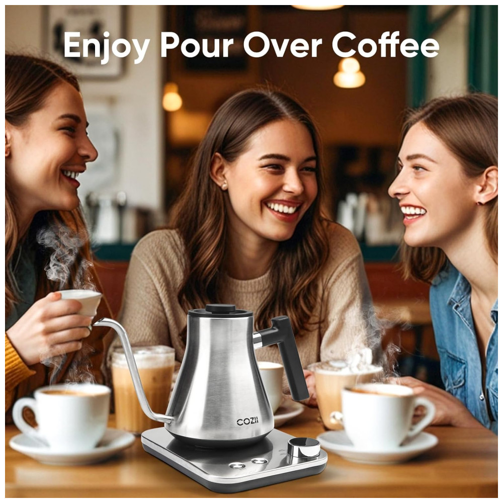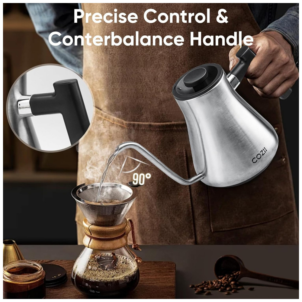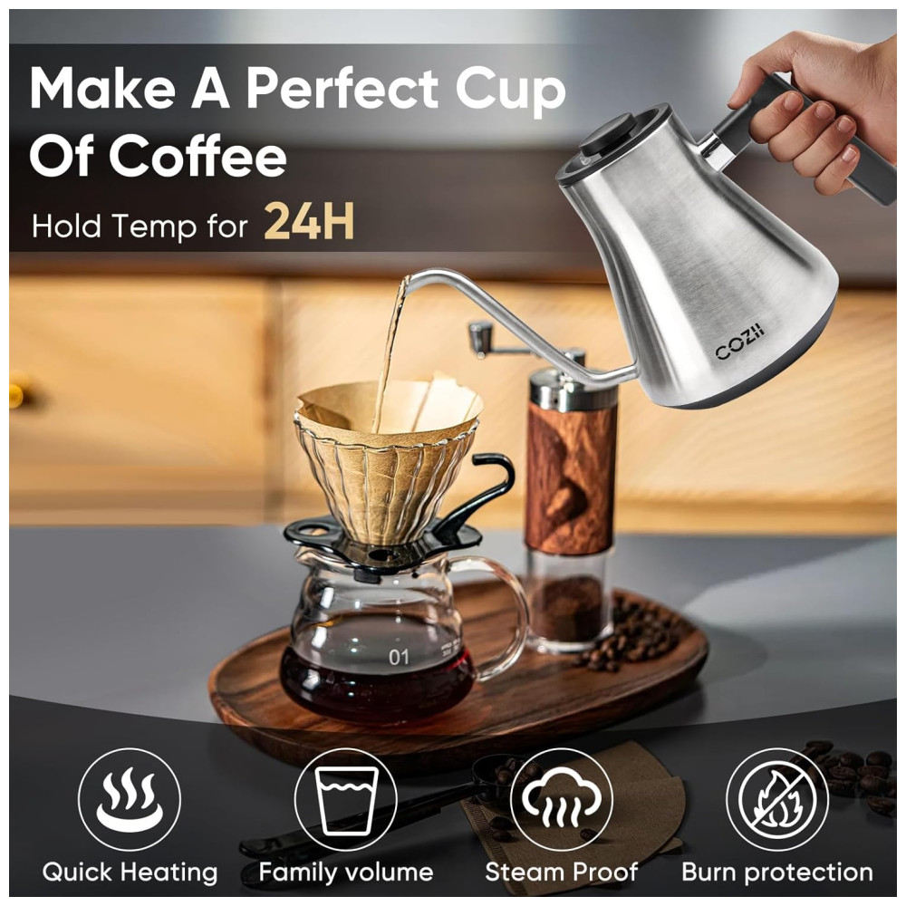 Chaleira Elétrica COZII Gooseneck Controle de Temperatura Ajustável 1200W Aquecimento Rápido 24H de Manutenção de Calor Desligamento Automático