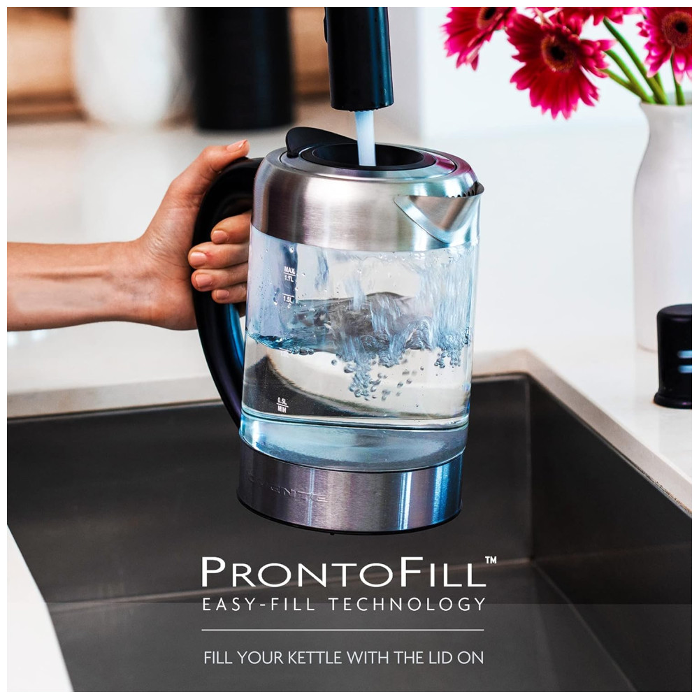 Pioneira em Design Ovente tem o orgulho de apresentar o KG612 com sua tampa ProntoFill, a primeira de seu tipo no , que permite que você despeje água através da tampa para reabastecer, permitindo multitarefas com a outra mão.