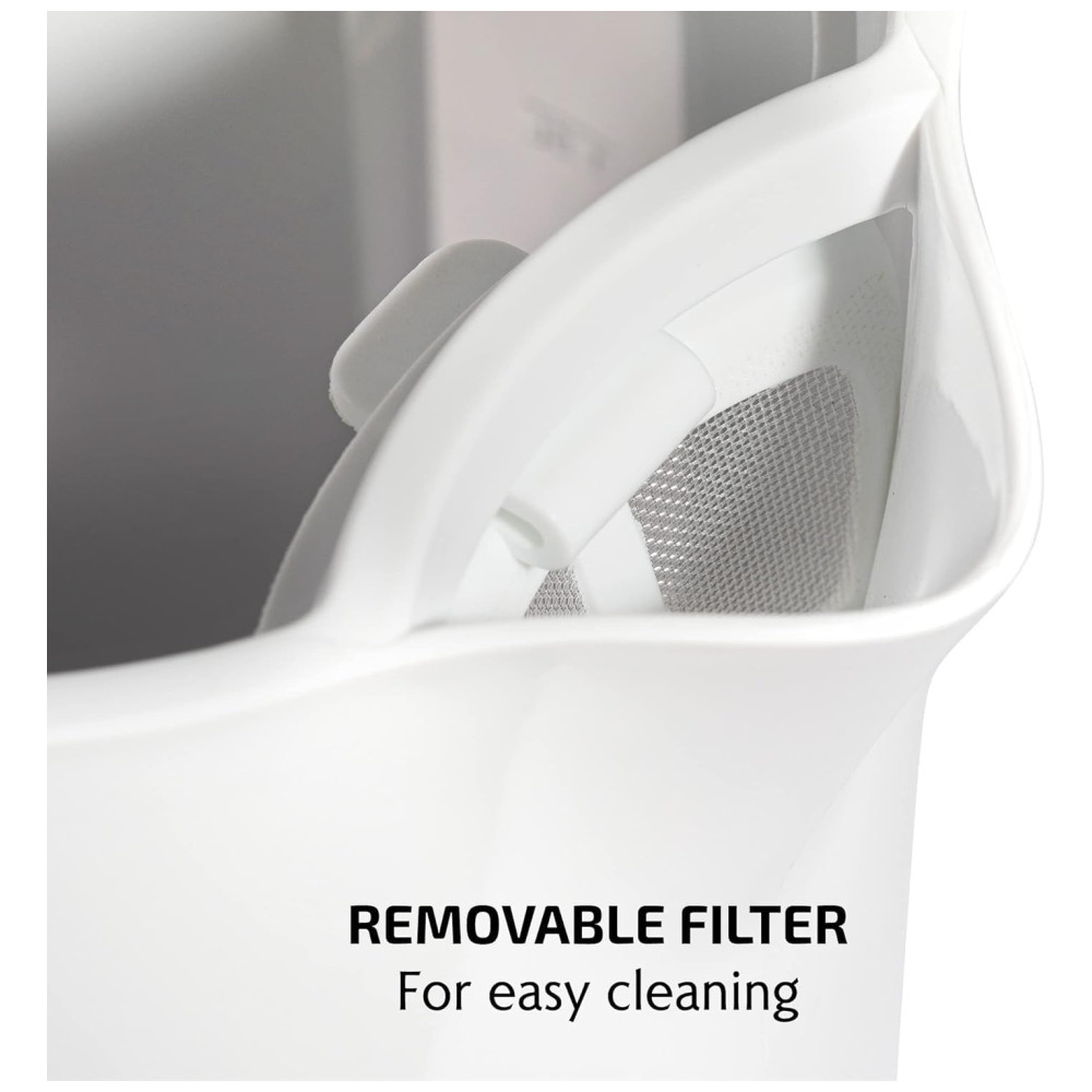 Recursos de segurança Equipado com um recurso de desligamento automático que desliga automaticamente a chaleira assim que o aquecimento estiver concluído e tecnologia de proteção contra fervura a seco, que a impede de aquecer caso alguém inadvertidamente a ligue quando estiver vazia.