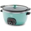 Luz indicadora permite saber quando a chaleira está aquecendo. Pressione o botão na base da chaleira e ele ficará vermelho. Depois de fervido, o interruptor levanta e a luz vermelha apaga. Para sua conveniência, a base possui slots de zenamento de cabo integrados.