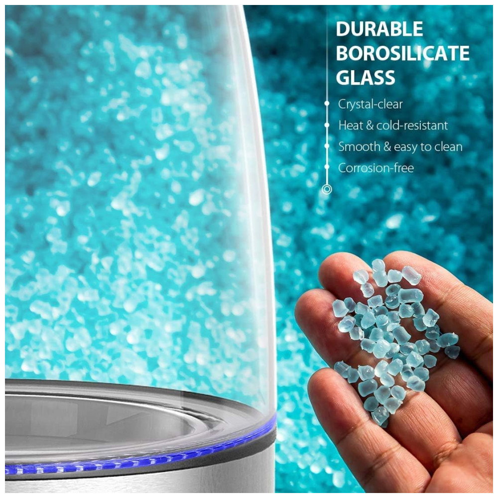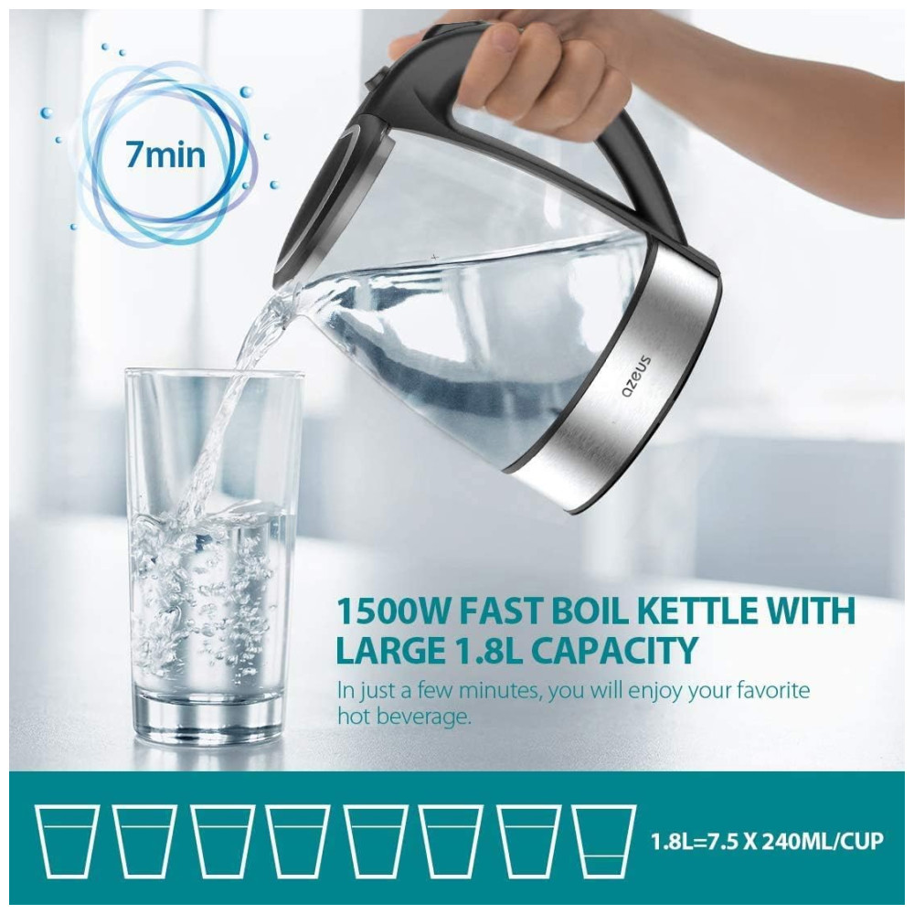 Desfrute de água pura e livre de produtos químicos em apenas 67 segundos! Com capacidade para 1,8 litros (equivalente a 7,5 xícaras), esta chaleira elétrica é perfeita para preparar chás, cafés e sopas rapidamente. Feita com materiais premium, como aço inoxidável 304 e vidro borossilicato, oferece recursos avançados de segurança, como desligamento automático e proteção contra fervura seca. Seu design elegante inclui luz LED azul, base giratória de 360 graus e abertura ampla para facilitar o reabastecimento e limpeza. A chaleira elétrica CX-817 da AZEUS é o complemento ideal para sua cozinha moderna e prática.