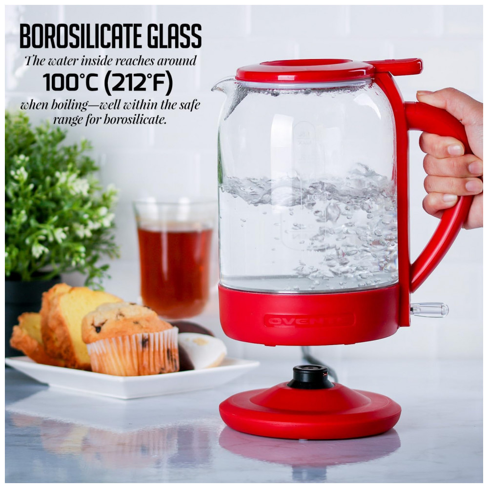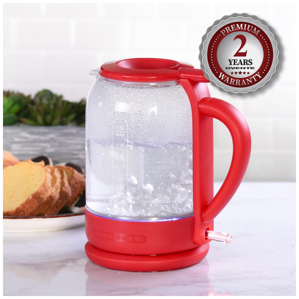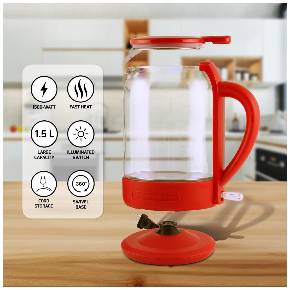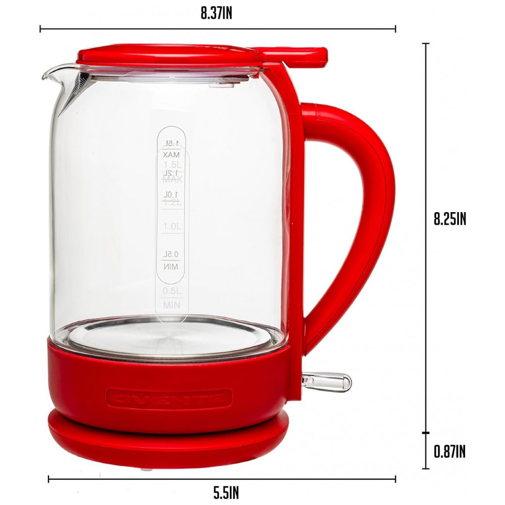 Chaleira Elétrica de Vidro 1.5L com Desligamento Automático 1500W 110v OVENTE KG516R Vermelho