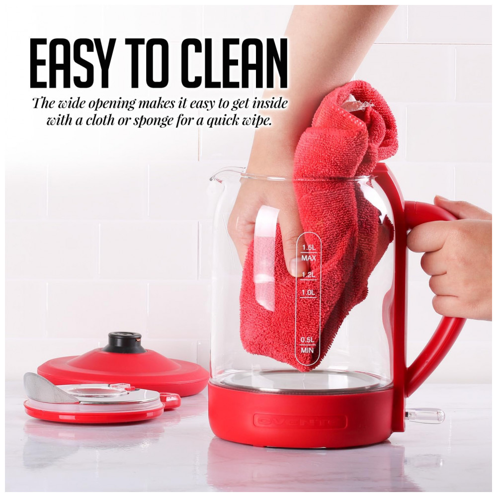 Instantâneo aqueça sua água duas vezes mais rápido com metade do consumo elétrico com a Chaleira Elétrica de Vidro Ovente. Esta chaleira elétrica tem um elemento de aquecimento oculto de aço inoxidável de 1500 W 120 V e ferve uma panela de 1,5 litros de água em menos de 7 minutos, economizando seu precioso tempo. Um ótimo substituto para o seu micro ondas e velhas chaleiras de fogão, use o para fazer chá, café, macarrão, aveia ou ovos cozidos.