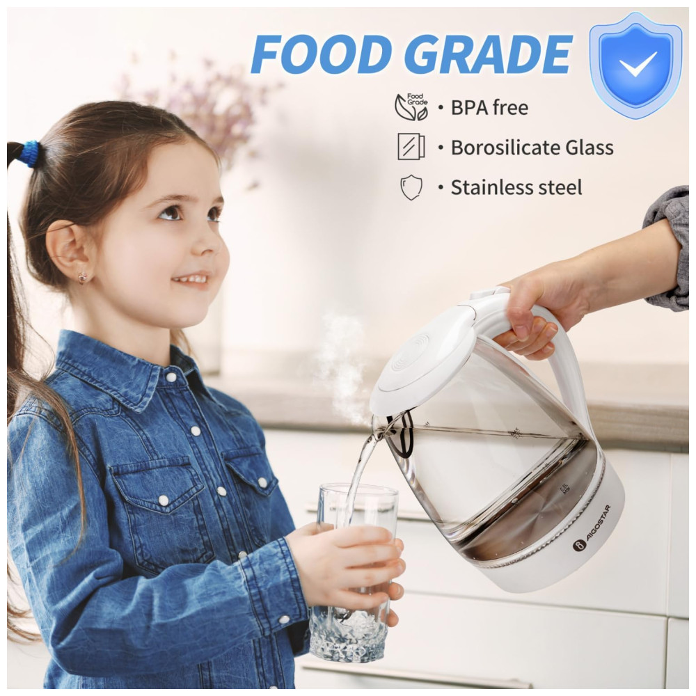 Chaleira Elétrica de Vidro 17L sem Fio com Luz LED 1100W Branca 110v AIGOSTAR Branco
