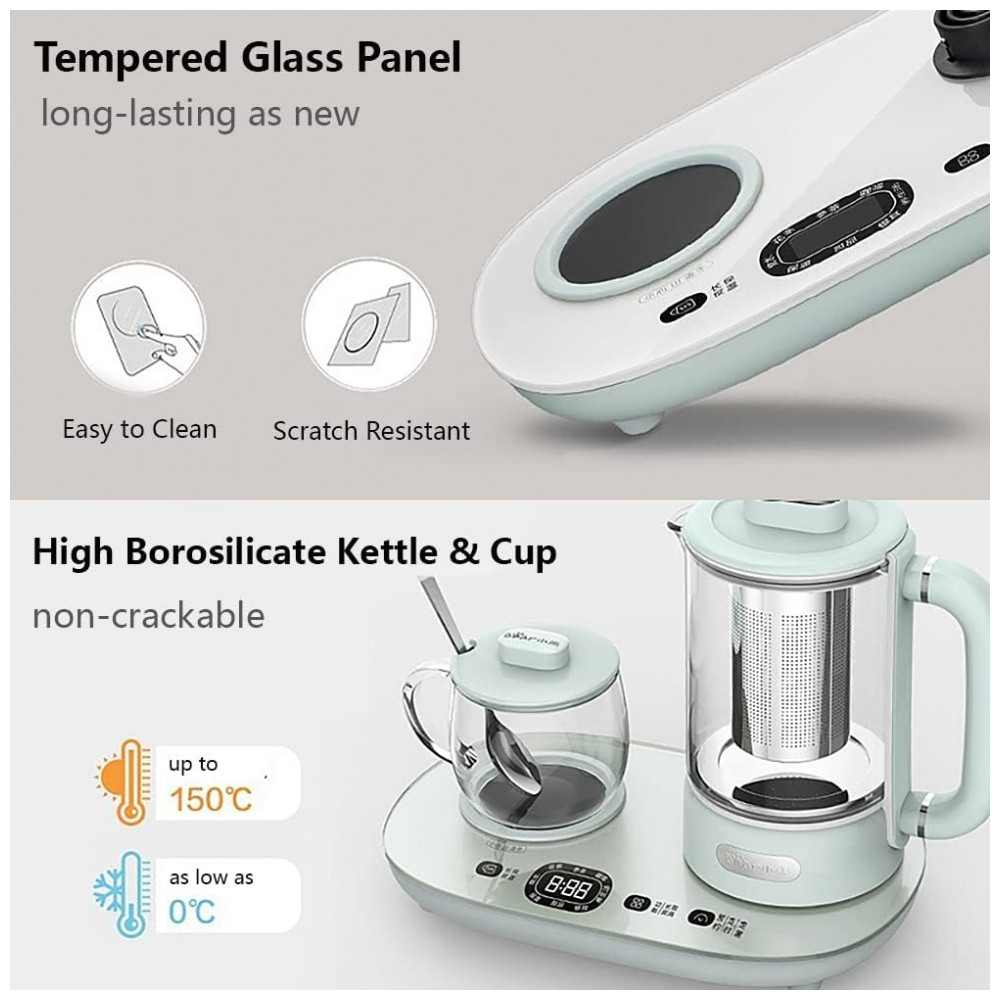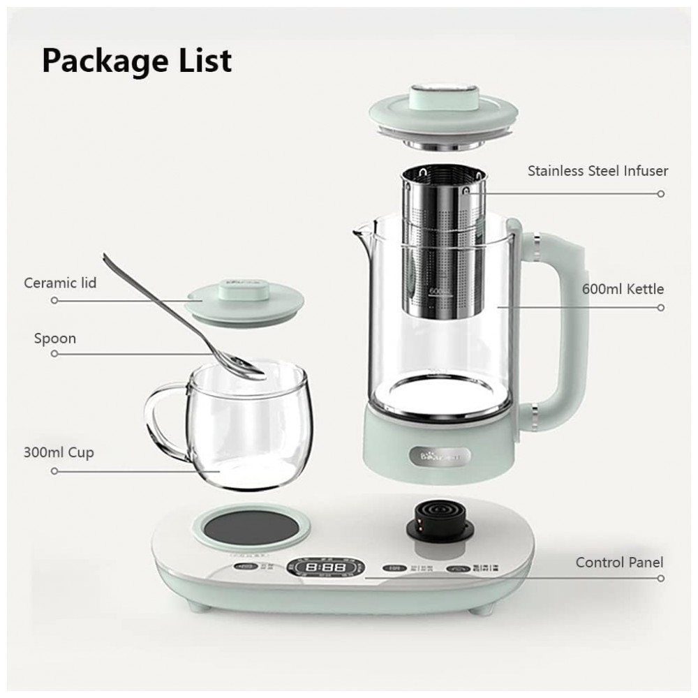 Chaleira Elétrica Bear YSH-C06N1 Azul Claro 600ml Vidro Borossilicato Controle Temperatura Infusor Aquecimento Automático 110V