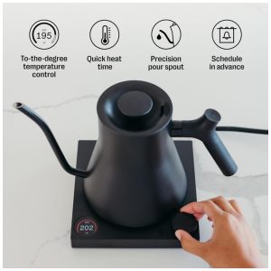 A chaleira elétrica Fellow Stagg EKG Pro é projetada para preparo preciso de café pour-over e chá, com controle de temperatura ajustável ao grau exato via display em alta resolução. Seu bico gooseneck proporciona fluxo controlado e contínuo, ideal para extração equilibrada. Conta com funções programáveis, como agendamento de fervura, modo de aquecimento, ajuste de altitude e cronômetro embutido para tempo exato de preparo. Construída com corpo em aço inox 304 18/8 com acabamento escovado, componentes externos em silicone alimentício e alça ergonômica em plástico com detalhes em madeira de nogueira, oferece durabilidade e segurança. A chaleira possui conectividade Wi-Fi para receber atualizações de firmware via app Fellow, garantindo evolução contínua do produto. Sua capacidade é de 0,9 litro, e potência de 1200 W em voltagem 110 V. Ideal para uso profissional ou doméstico exigente, garante aquecimento rápido e controle preciso da temperatura entre 40°C e 100°C.