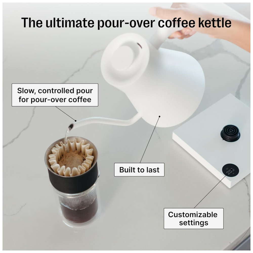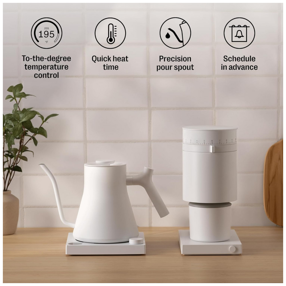 Chaleira Elétrica Fellow Stagg EKG Pro Branco Fosco com Alça Madeira Maple Controle Preciso Temperatura 09 L 110V 1200W