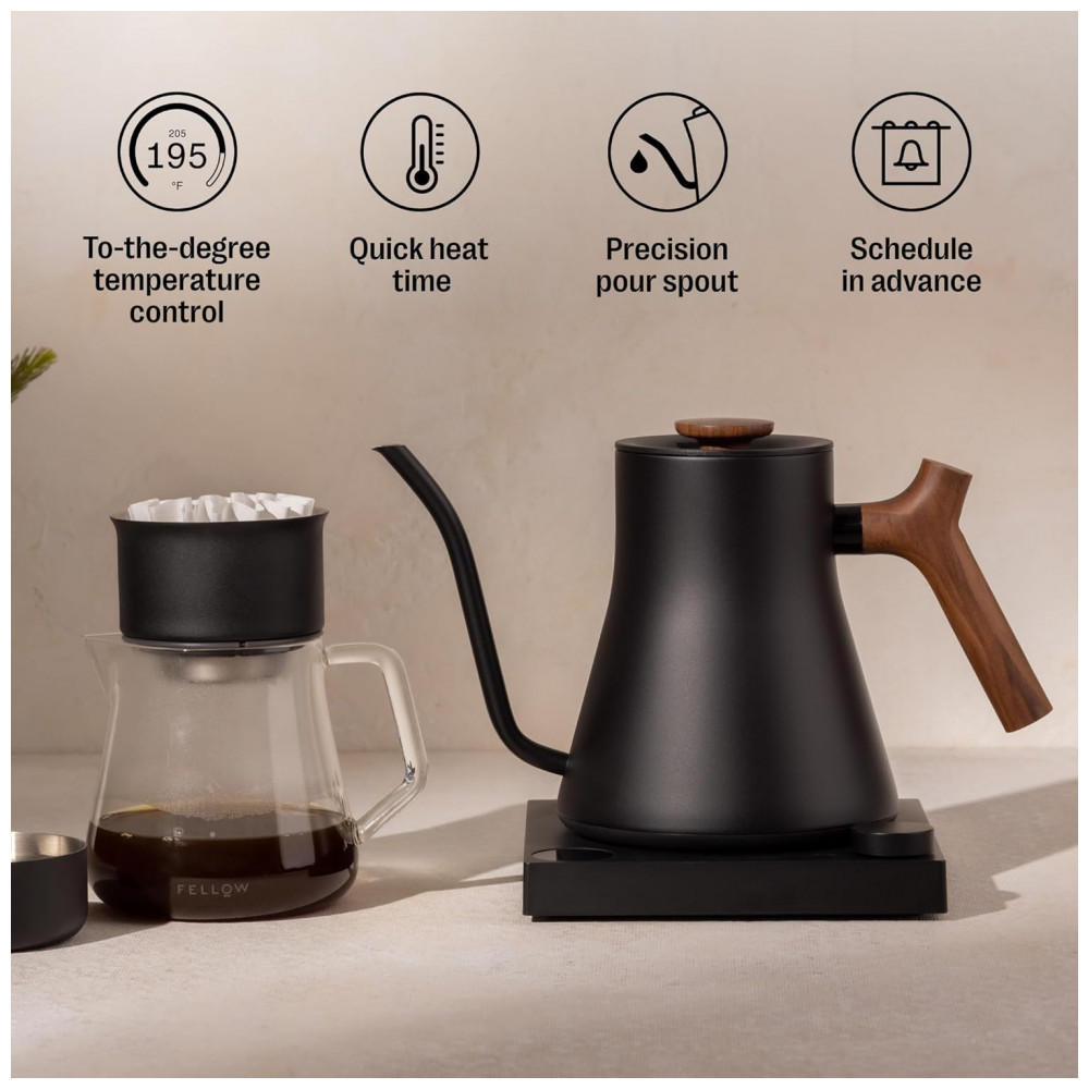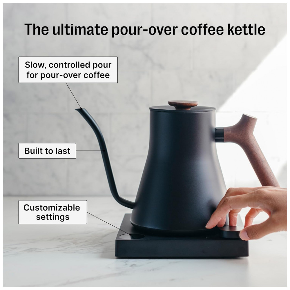 Chaleira Elétrica Fellow Stagg EKG Pro Preto Fosco com Alça de Madeira Nogal Controle Preciso de Temperatura 09 L 110V