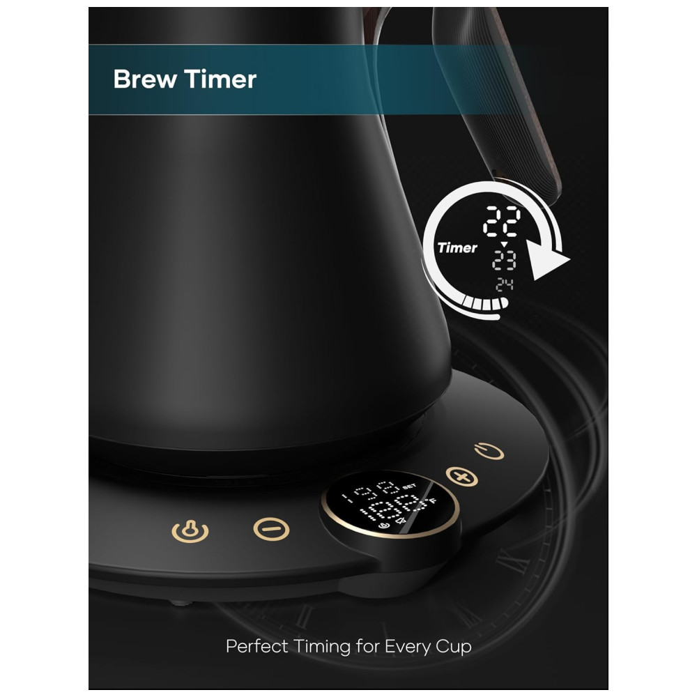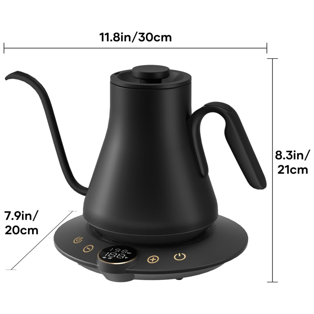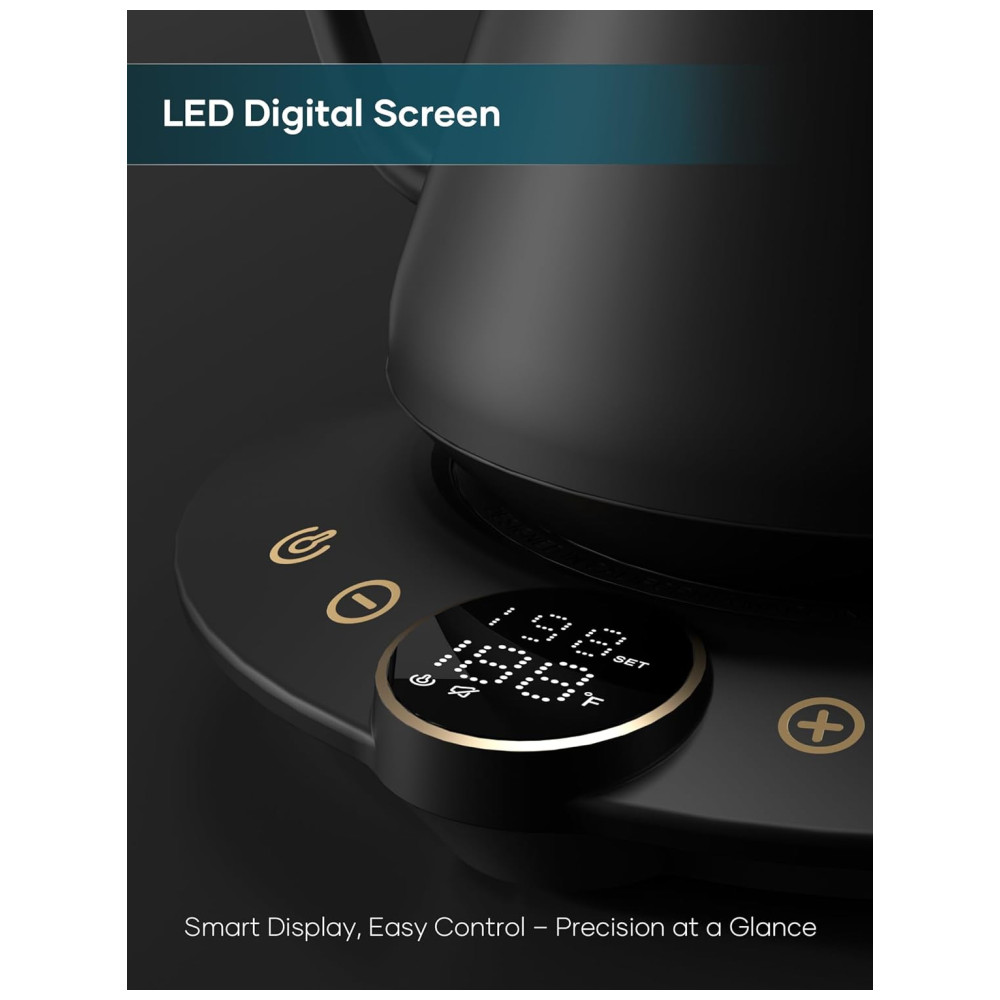 Chaleira Elétrica Gooseneck Intasting Controle de Temperatura Interior em Aço Inox Aquecimento Rápido 09L – Preto