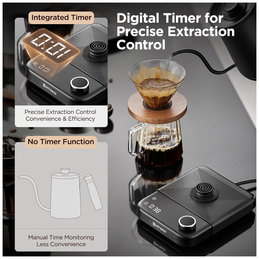 Desfrute de um controle preciso para uma infusão perfeita com a chaleira gooseneck elétrica HIYAKOI, que possui um bico especialmente projetado para um fluxo de água total, garantindo precisão para preparar um café e chá saborosos e consistentes. Alcance a temperatura ideal com 1 grau de precisão, tornando-a ideal para entusiastas de café e chá que exigem ajustes térmicos precisos. Com 1200W de potência, essa chaleira elétrica aquece a água em apenas 5 minutos, sendo perfeita para preparos rápidos e eficientes. Mantenha a água aquecida por até 12 horas e monitore o tempo de infusão diretamente na tela integrada, garantindo extrações perfeitas a cada preparo. Feita de aço inoxidável de qualidade alimentar, a chaleira elétrica HIYAKOI garante um sabor puro sem plástico, oferecendo durabilidade para uso diário. Embalada de forma elegante, é o presente ideal para os amantes de café e chá de alta qualidade.