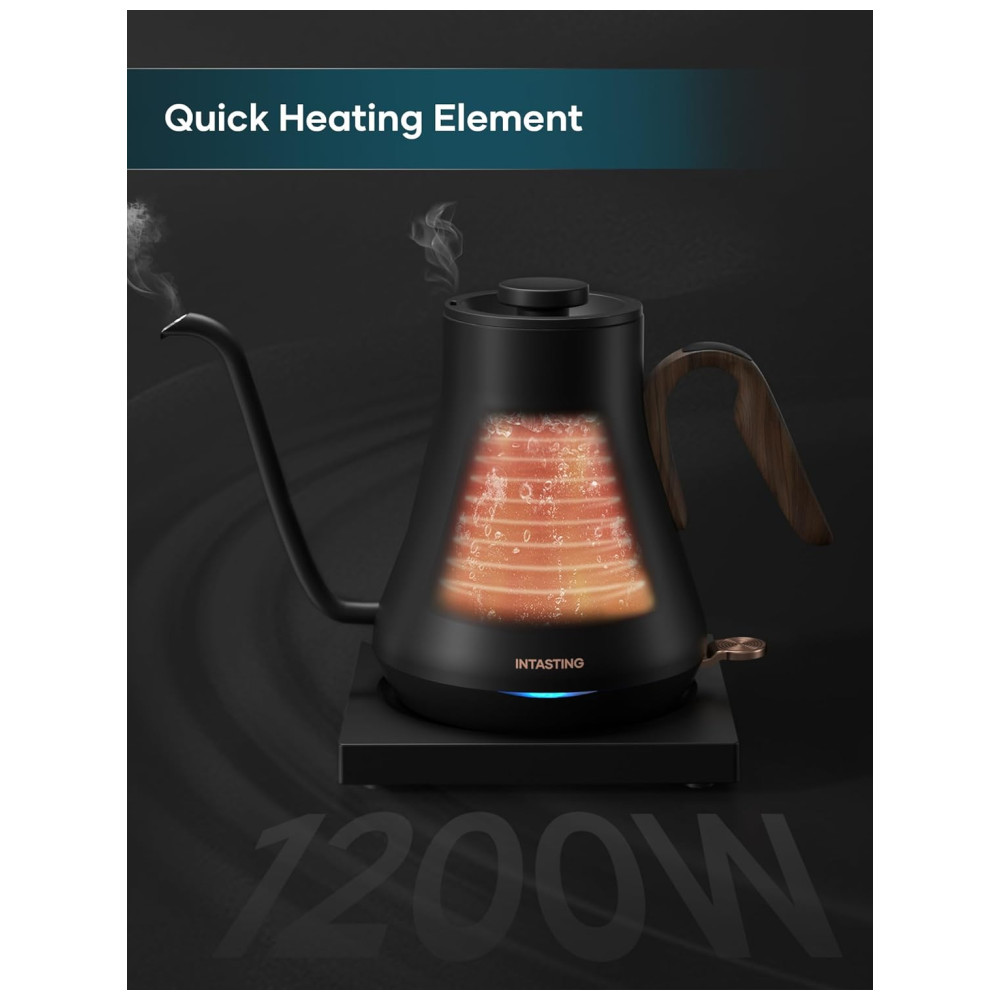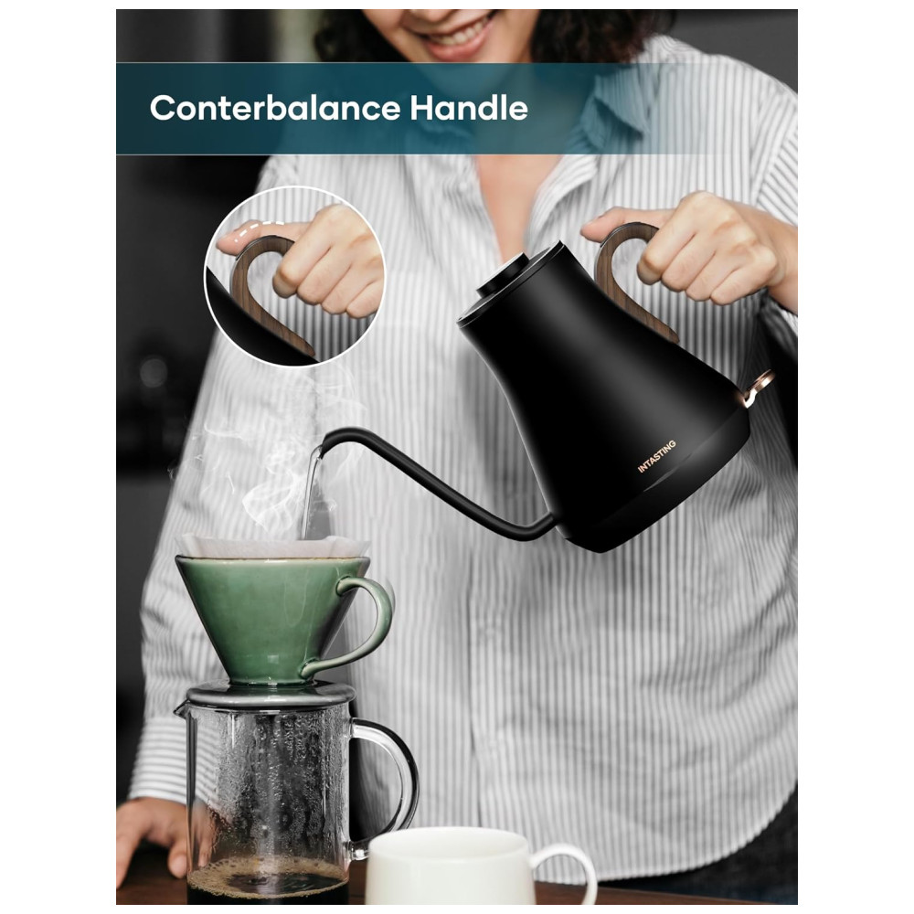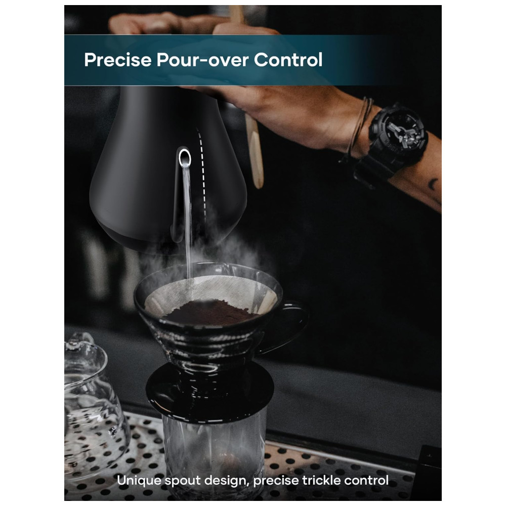 Base de energia estável O design retangular da base de energia sem fio não apenas melhora a estabilidade do corpo da chaleira, mas também facilita o vazamento de café sem ser prejudicado pelo fio de energia