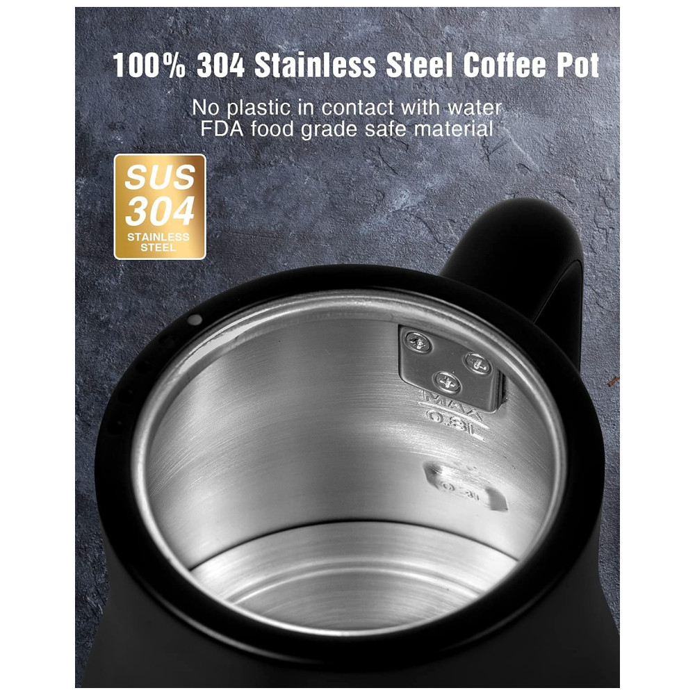 Chaleira Elétrica Jocuu 800mL em Aço Inoxidável com Desligamento Automático e Proteção Contra Fervura 110V 1200W Preto Fosco