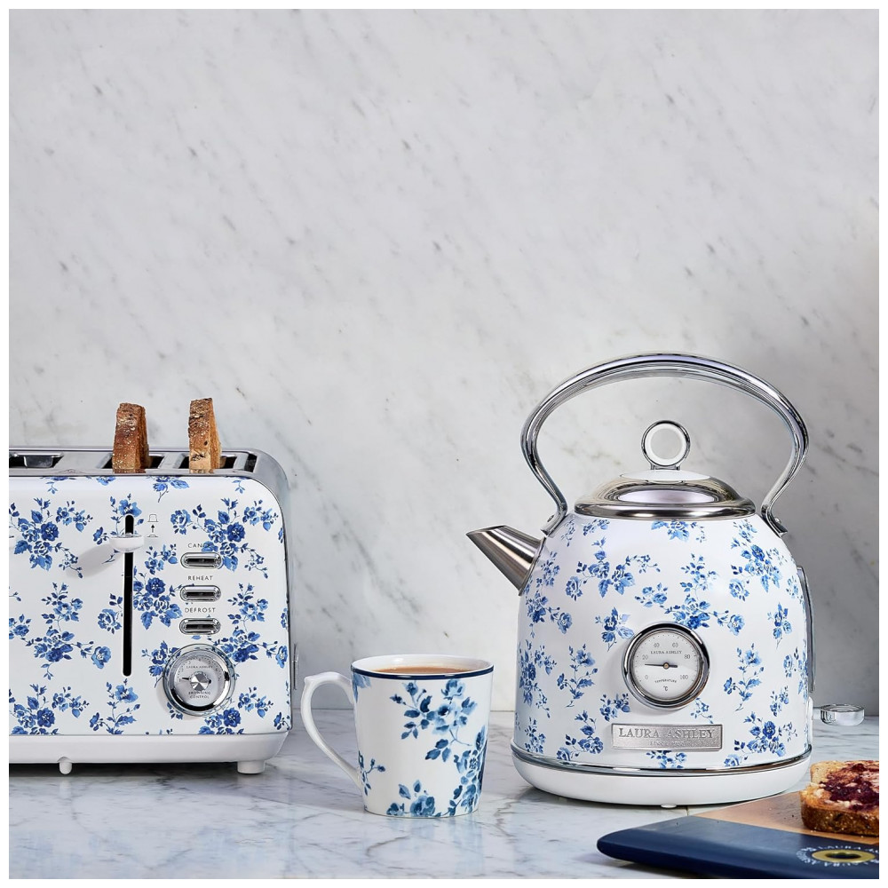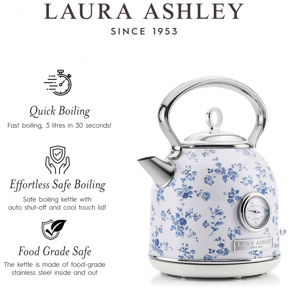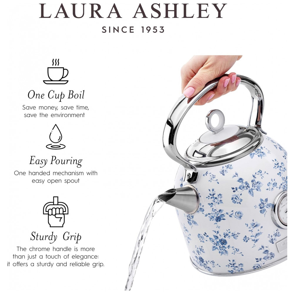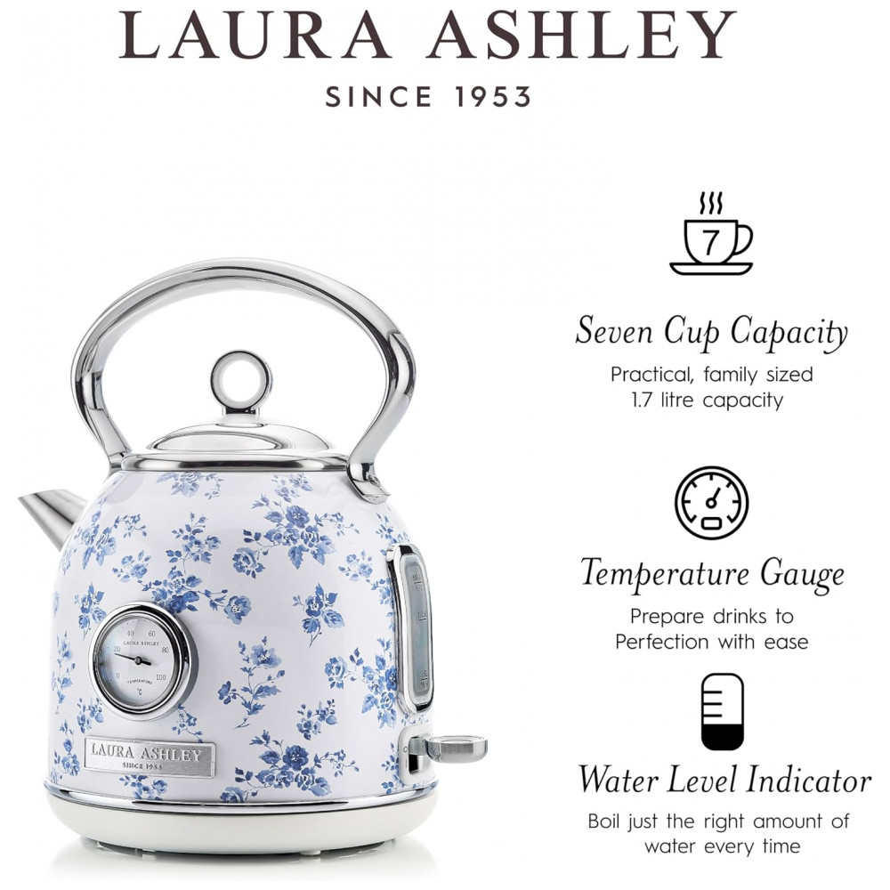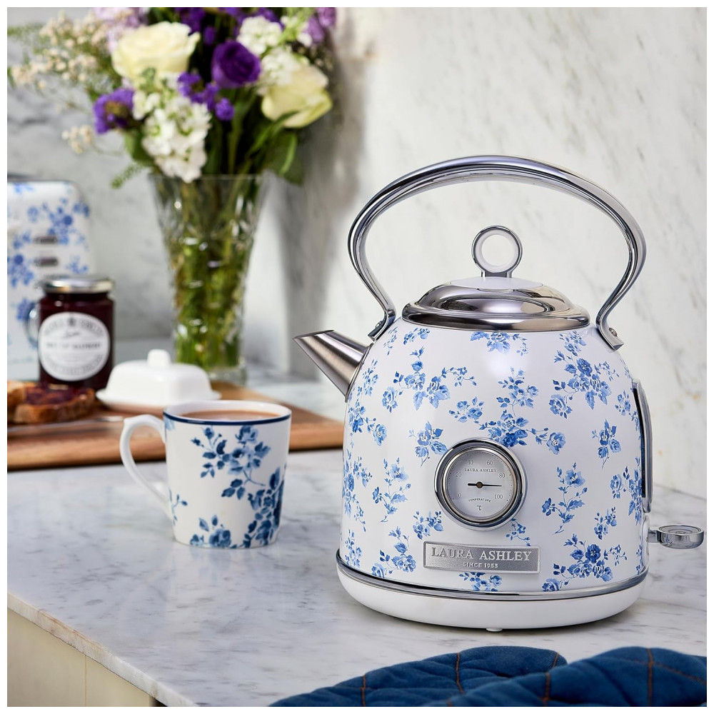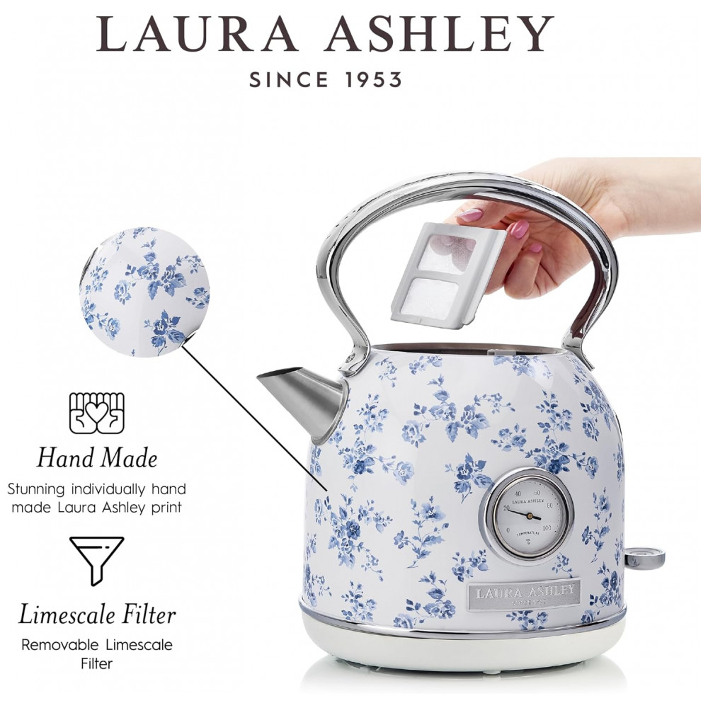 Chaleira Elétrica Laura Ashley 17L Inox Branco com Estampa Floral China Rose Termômetro Externo Filtro Removível Dome VQ-SBPKK336-LACR-US 1500W 110V