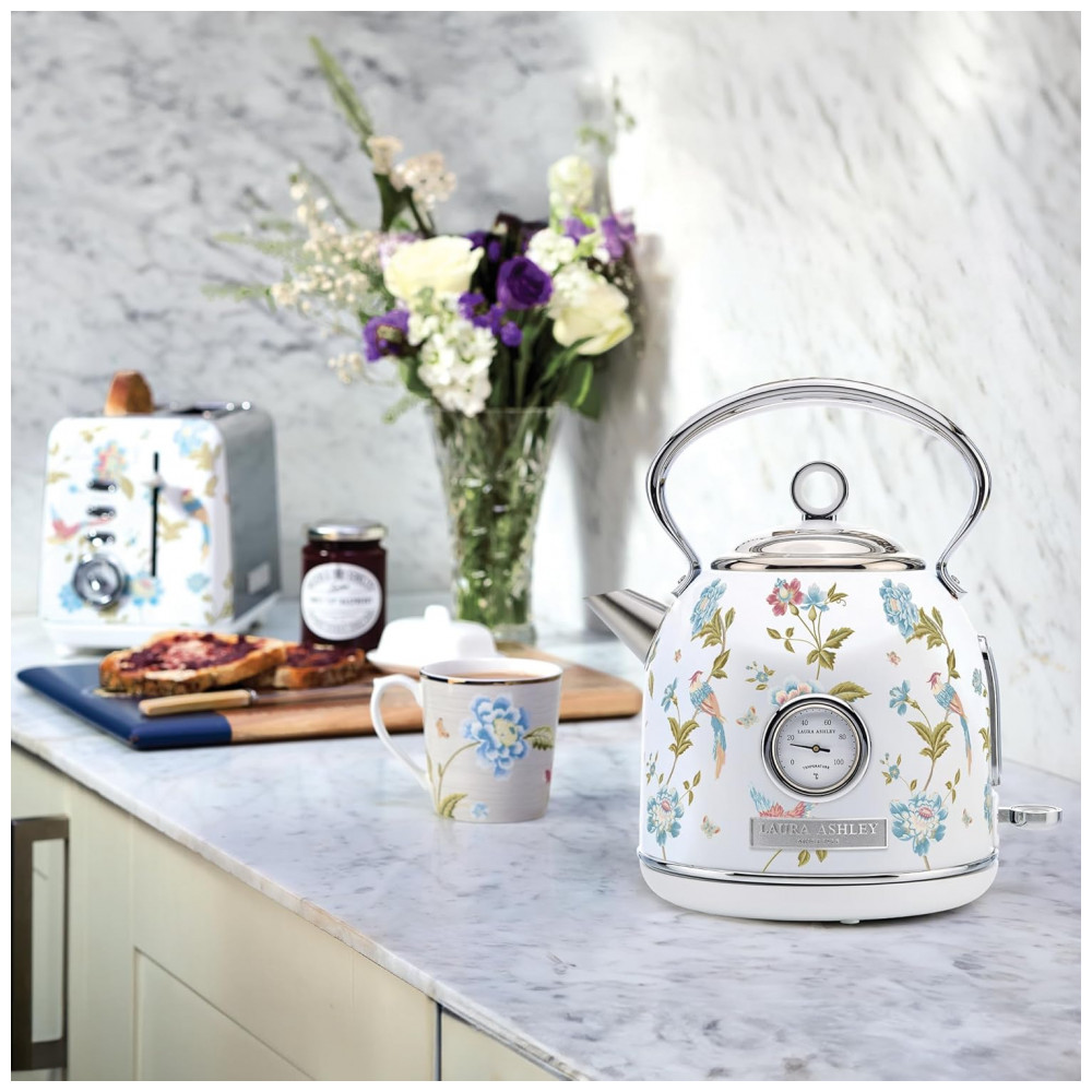 Chaleira Elétrica Laura Ashley 17L Inox Branco com Estampa Floral Elveden Termômetro Externo Filtro Removível Dome VQ-SBPKK336-LAEW-US 1500W 110V