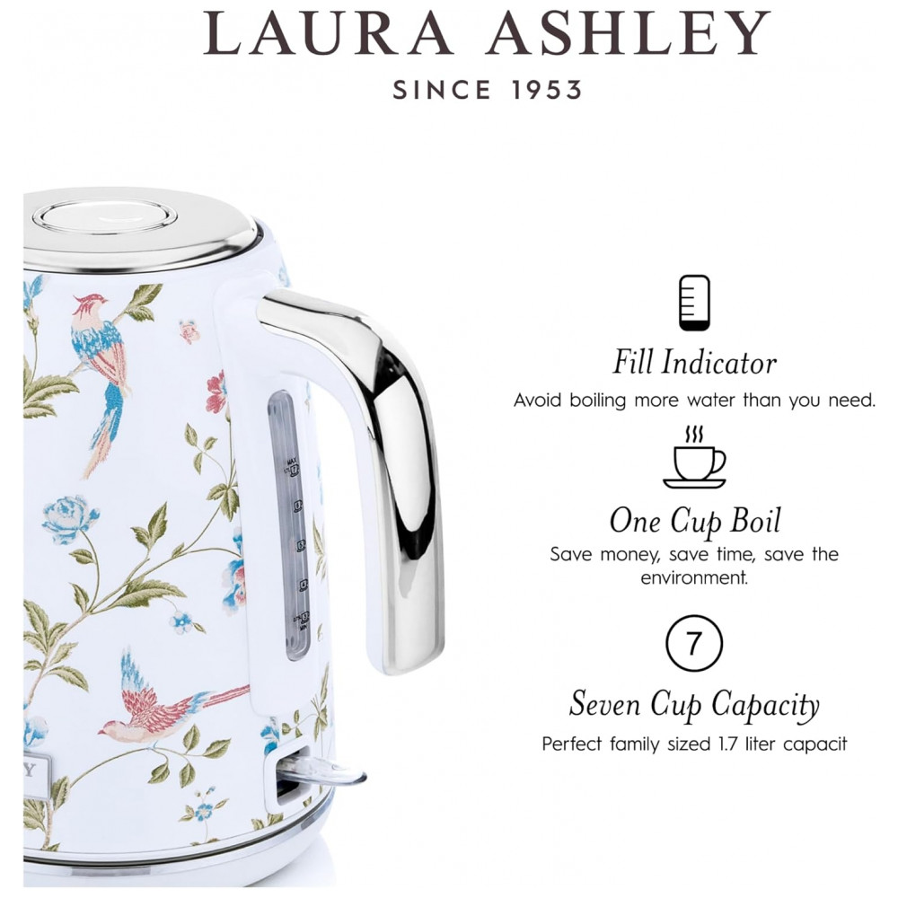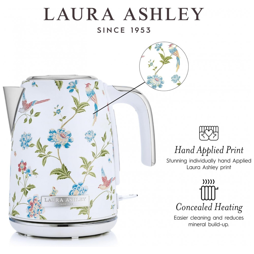 Chaleira Elétrica Laura Ashley Elveden White 17L Aço Inoxidável 1500W Fervura Rápida e Proteção Automática