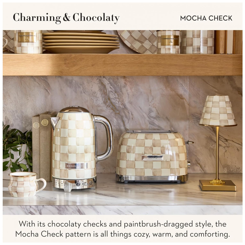 Conteúdo da embalagem: 1 chaleira elétrica MacKenzie-Childs Sterling Check, 1 base elétrica, documentação do fabricante