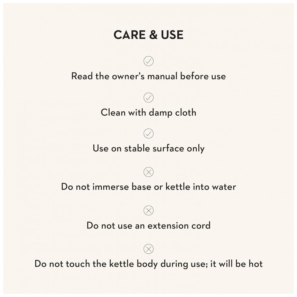 O equipamento incorpora recursos de proteção contra fervura a seco e desligamento automático, auxiliando na segurança de uso diário. O cabo elétrico conecta-se à base, permitindo que o corpo da chaleira seja manuseado sem fio durante o serviço à mesa. A alça em ABS cromado e o bico em aço inox foram dimensionados para apoio firme e escoamento direcionado da água aquecida. O conjunto é indicado para instalação em superfície estável, seguindo instruções de limpeza com pano levemente úmido e sem imersão da base ou do corpo em água.