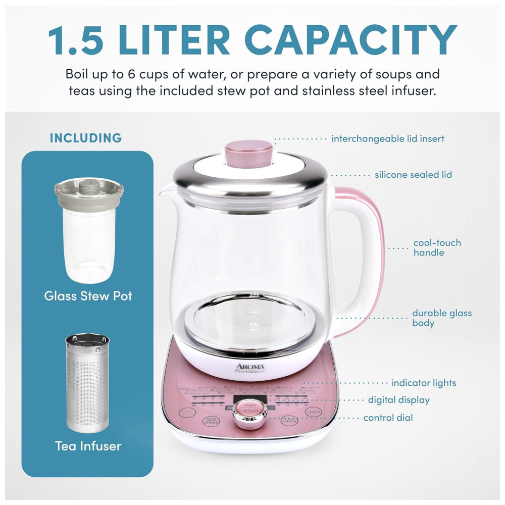 Chaleira Elétrica Multiuso 1.5L com Temporizador 800W 110v AROMA PROFESSIONAL AWK 701 Rosa