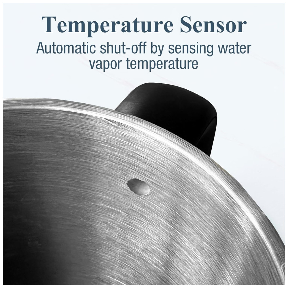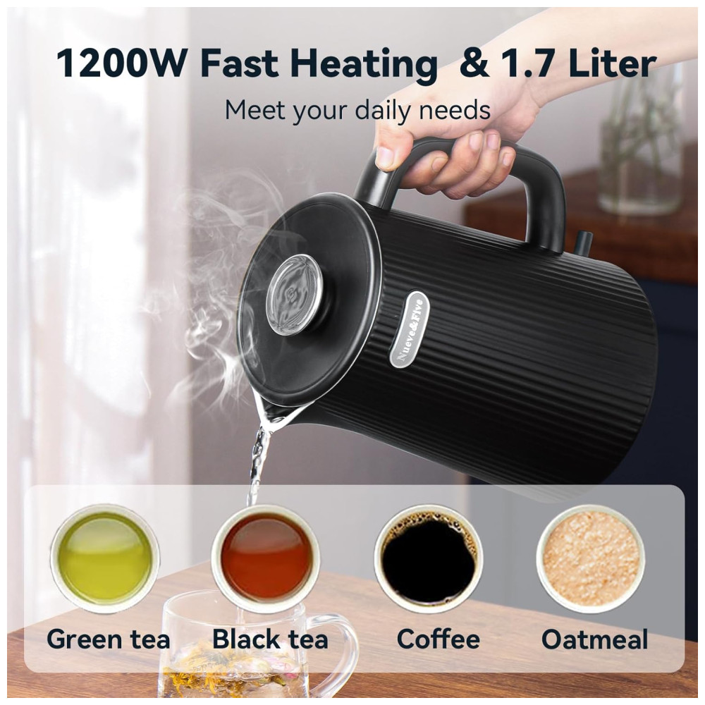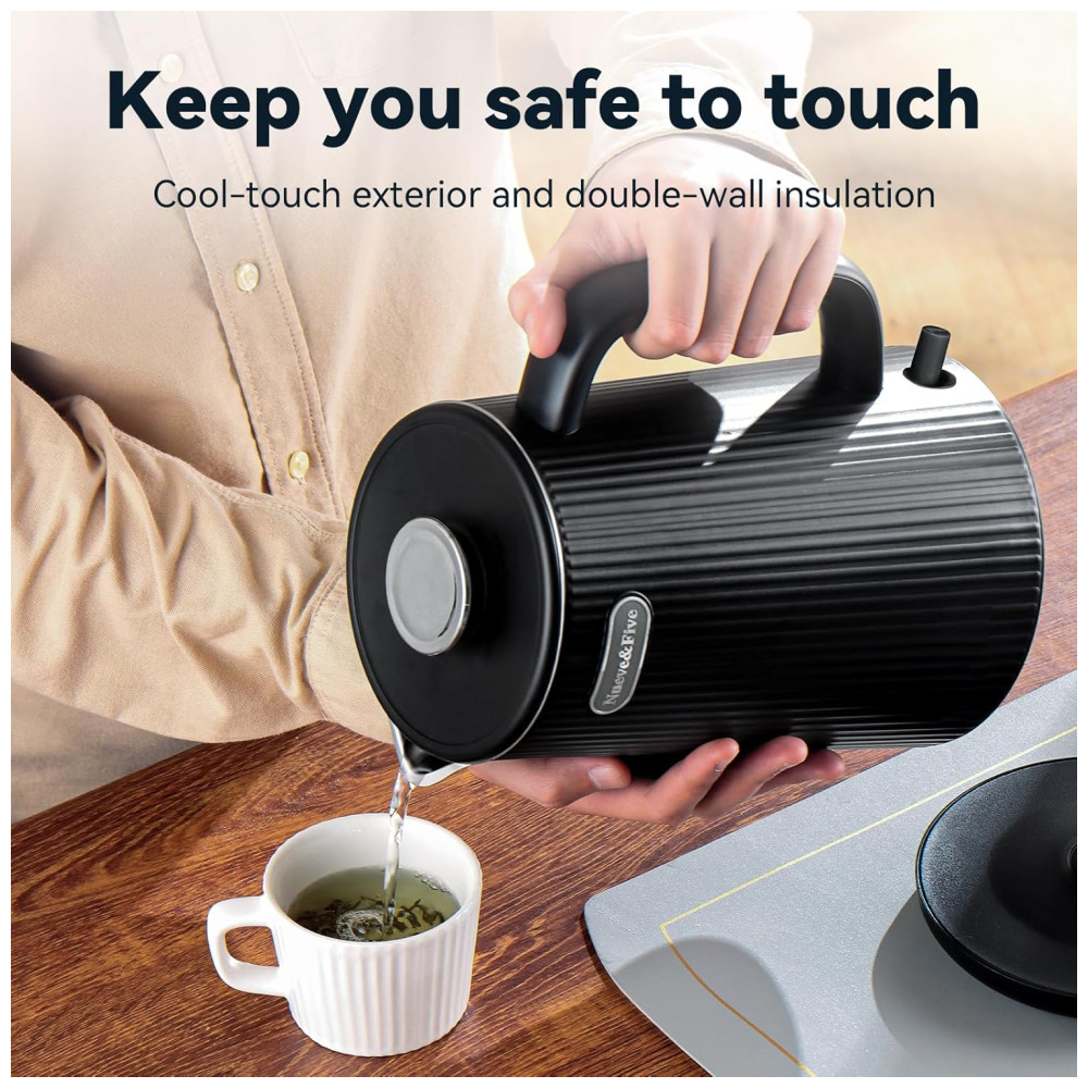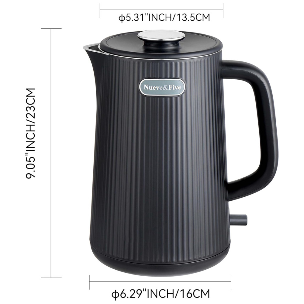 Chaleira Elétrica Nueve&Five 1.7L Chaleira Elétrica de Parede Dupla Desligamento Automático 1200W em Aço Inoxidável 304 – Preto