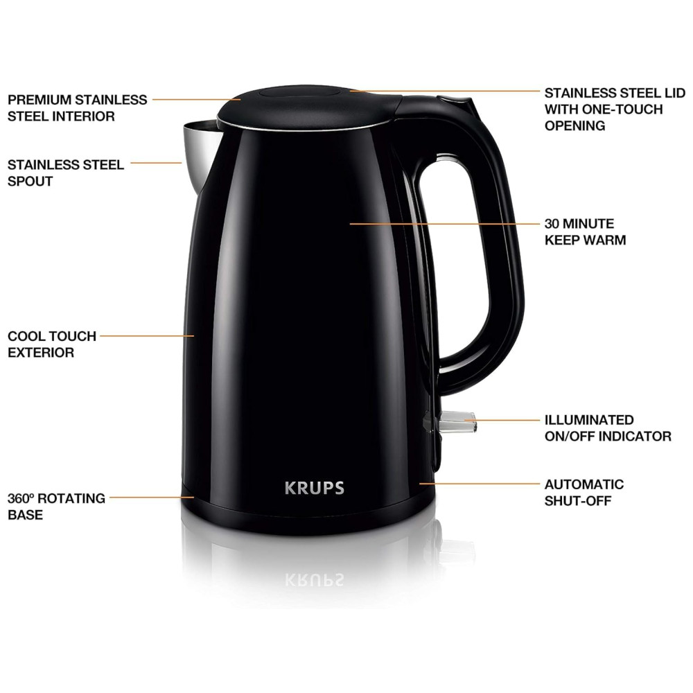 Chaleira Elétrica Parede Dupla em Aço Inoxidável com Toque Frio 1.5 Litro KRUPS BW26 Preto