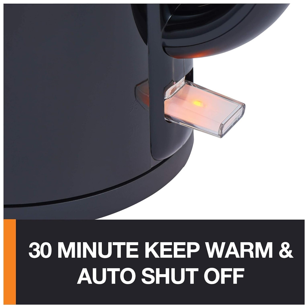 Aqueça rapidamente até 1,5 L. de água para chá, café instantâneo, chocolate quente, sopa e muito mais 1500 Watts de potência de aquecimento INTERIOR DE AÇO INOX interior em aço inoxidável 100 premium, incluindo panela, bica, tampa e aro a água quente não entra em contato com nenhum plástico superfície perfeita para uma limpeza mais fácil da escala O design de parede dupla mantém o exterior de plástico confortavelmente fresco e ao toque e a água quente no interior quente por mais tempo 30 minutos mantenha quente elementos e controles de aquecimento patenteados British Strix garantem qualidade e segurança comprovadas PROJETO SEM FIOS DE USO FÁCIL Chaleira sem fio para servir com elegância retorna à base rotacional de 360 graus de qualquer ângulo a tampa se abre com o pressionar de um botão para facilitar o enchimento e a limpeza. Prepare uma xícara quente de chá com total serenidade, graças a essa chaleira isolada de dupla camada que cria uma barreira térmica para uma superfície externa segura ao toque