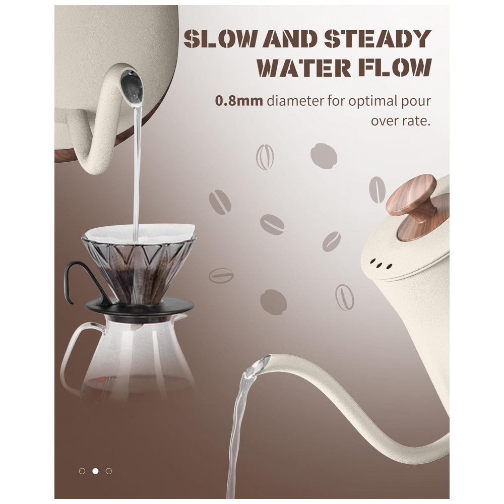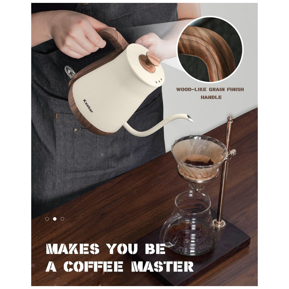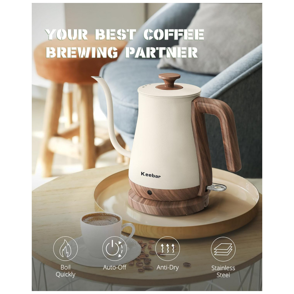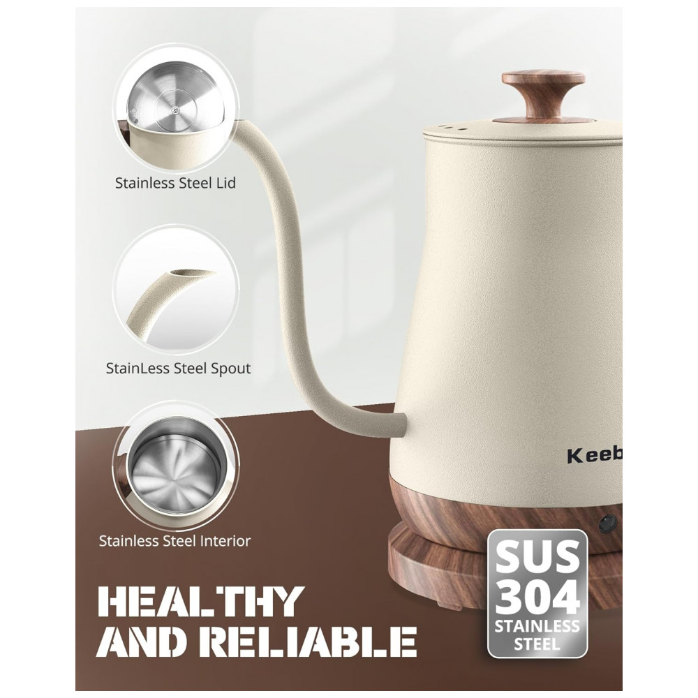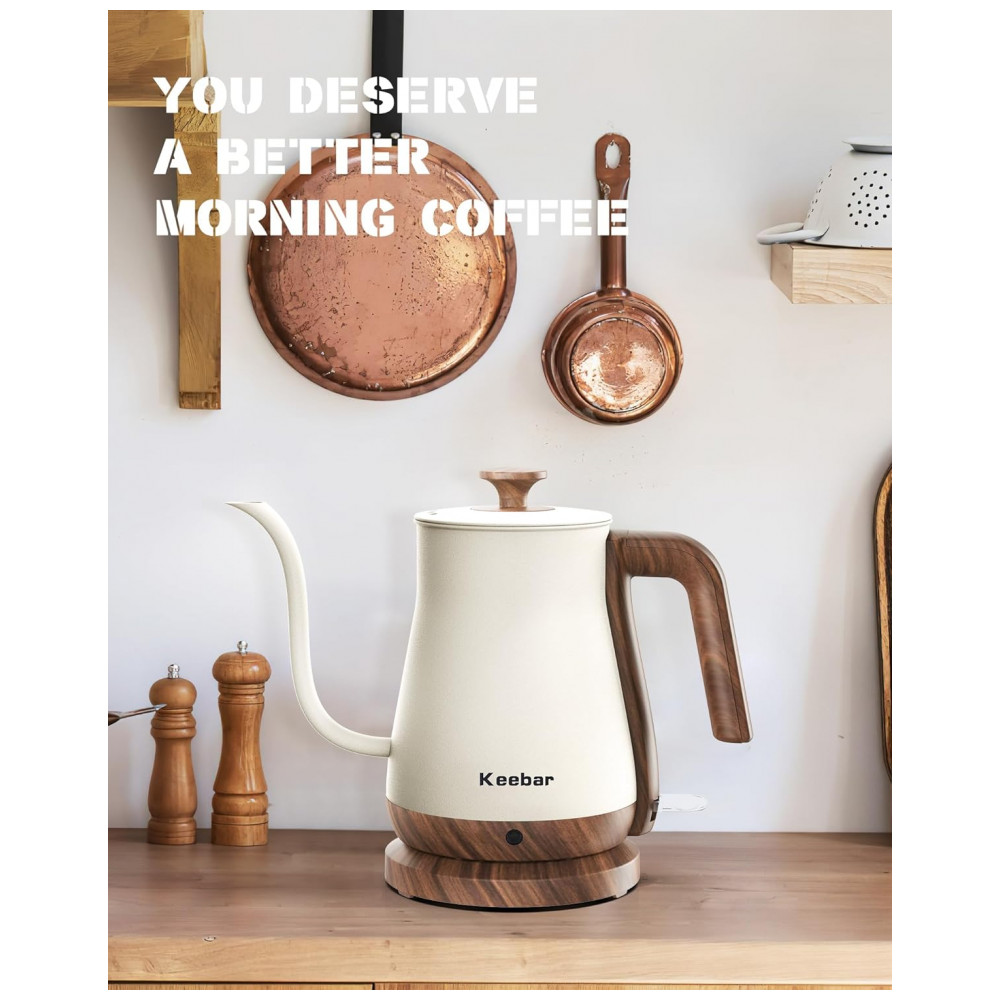 Chaleira Elétrica Pescoço de Ganso 800mL em Aço Inoxidável com Acabamento de Grão Semelhante a Madeira e Desligamento Automático Keebar Bege