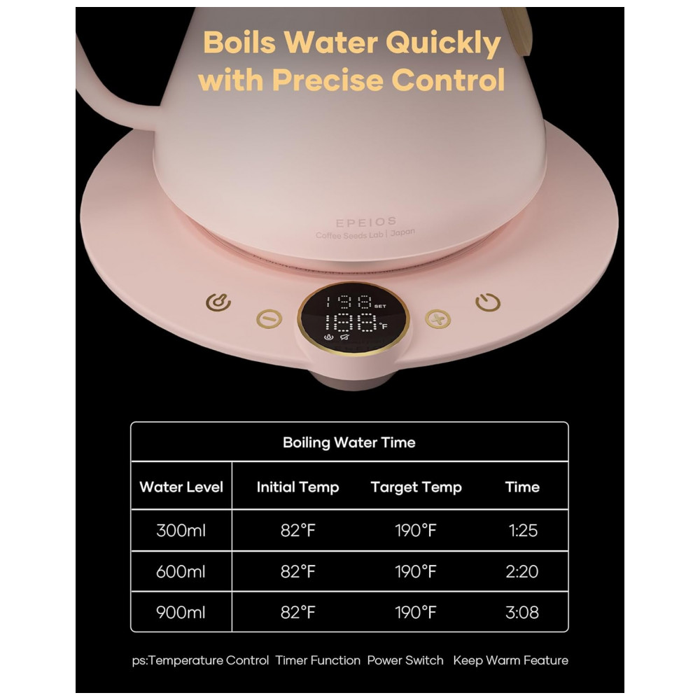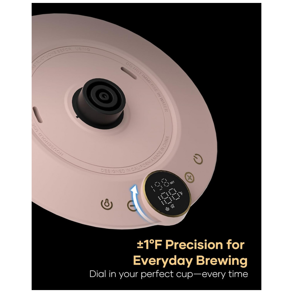 O bico em pescoço de ganso em formato S foi projetado para fluxo estável e controlado, auxiliando no vertimento uniforme durante o preparo de café filtrado. O corpo metálico em acabamento rosa Munch atua em conjunto com a base com desligamento automático, proteção contra superaquecimento e fervura a seco, em operação elétrica em 110V.