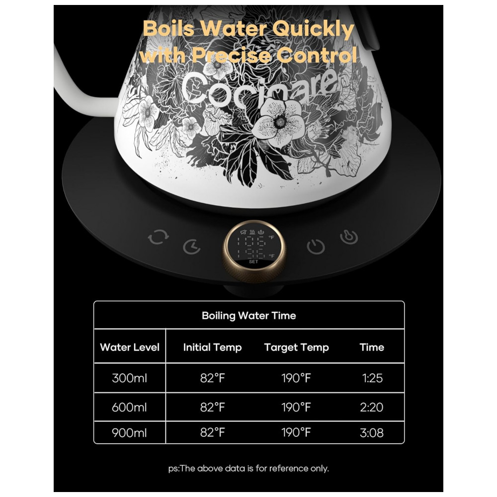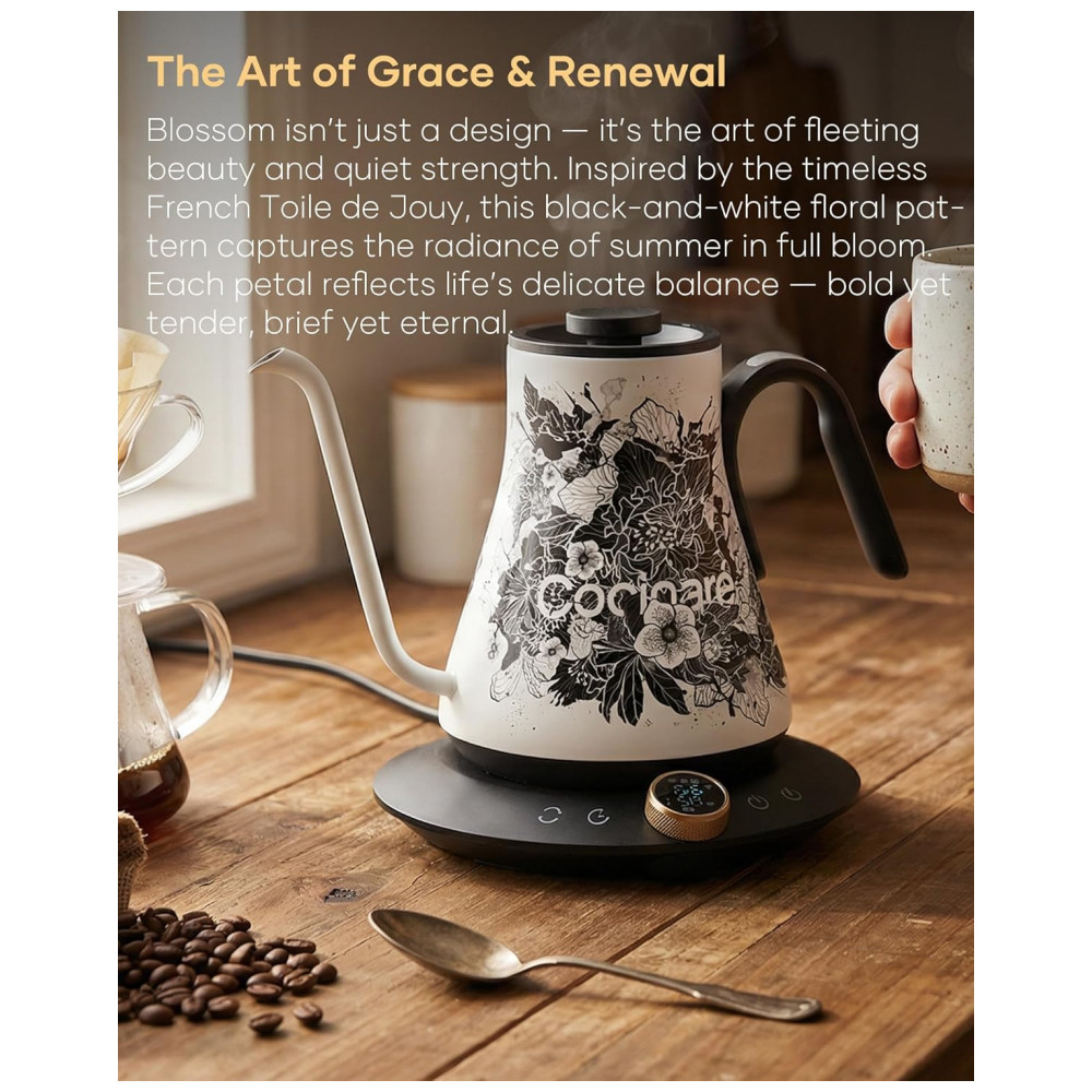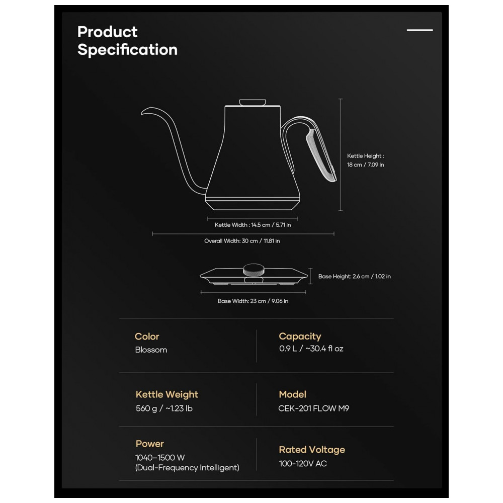 Chaleira elétrica pescoço de ganso Cocinare FLOW M9 09 L inox controle de temperatura 1200W 110V Blossom
