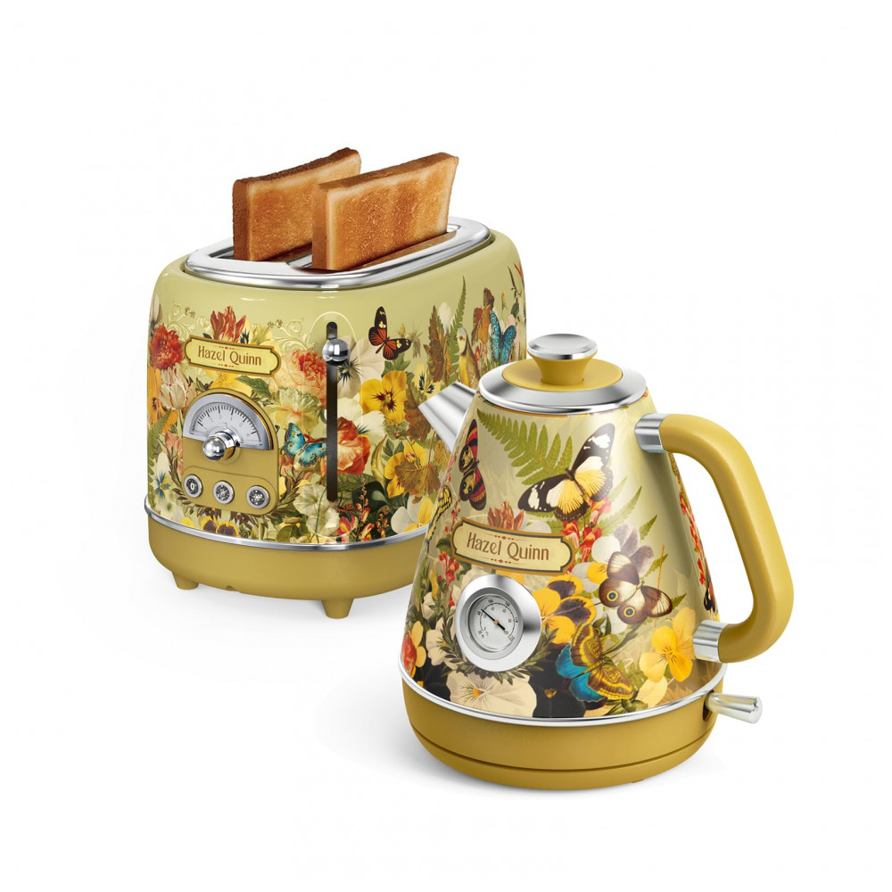 A torradeira retrô Hazel Quinn X Eduardo Recife para 2 fatias foi projetada para uso diário em preparo de pães, torradas, bagels e muffins, com corpo em aço inoxidável e visual com estampa retrô assinada pelo artista. O aparelho conta com 6 níveis de tostagem ajustáveis por seletor frontal, 3 funções dedicadas (Cancelar, Descongelar e Reaquecer) e potência de 850W, dimensionada para uso doméstico.