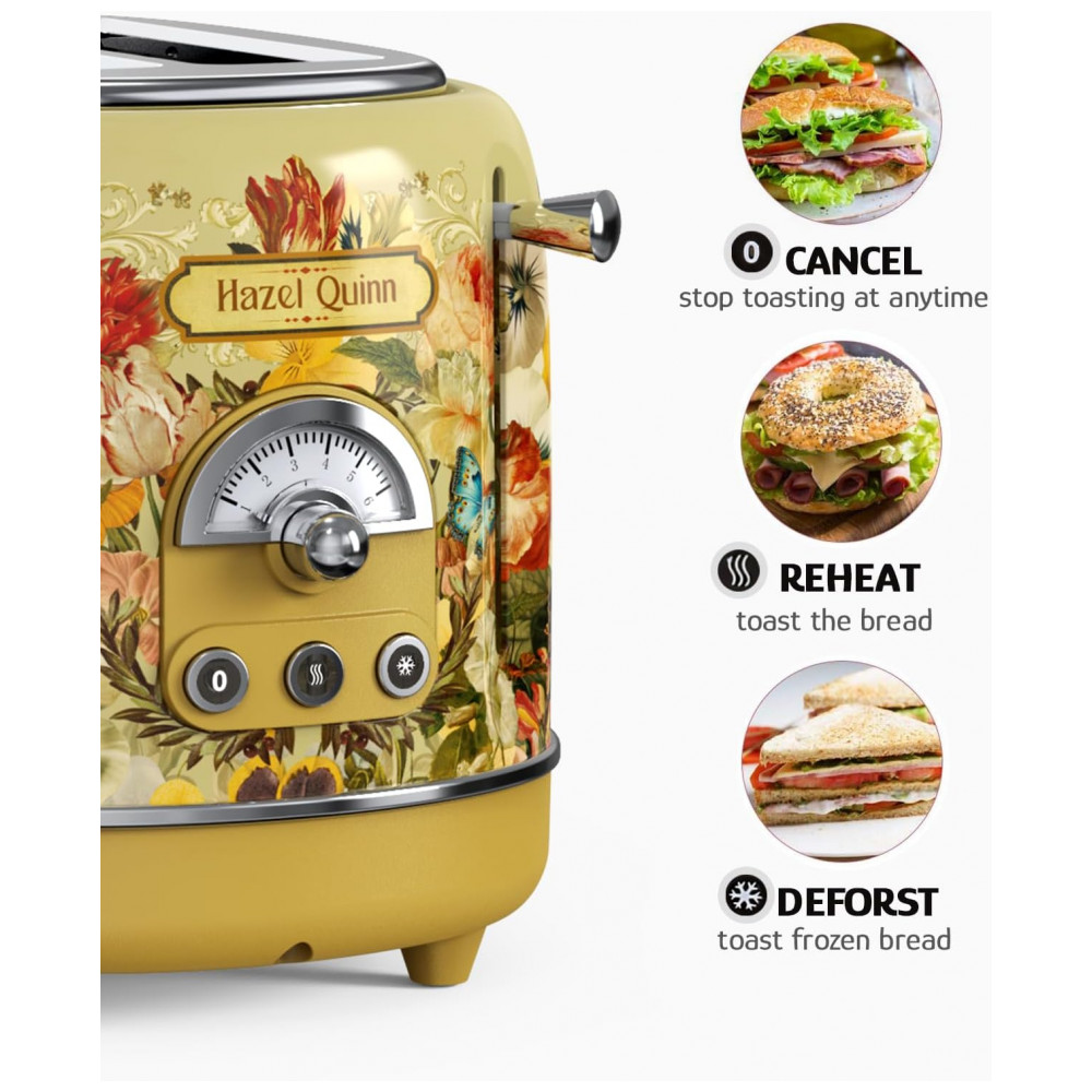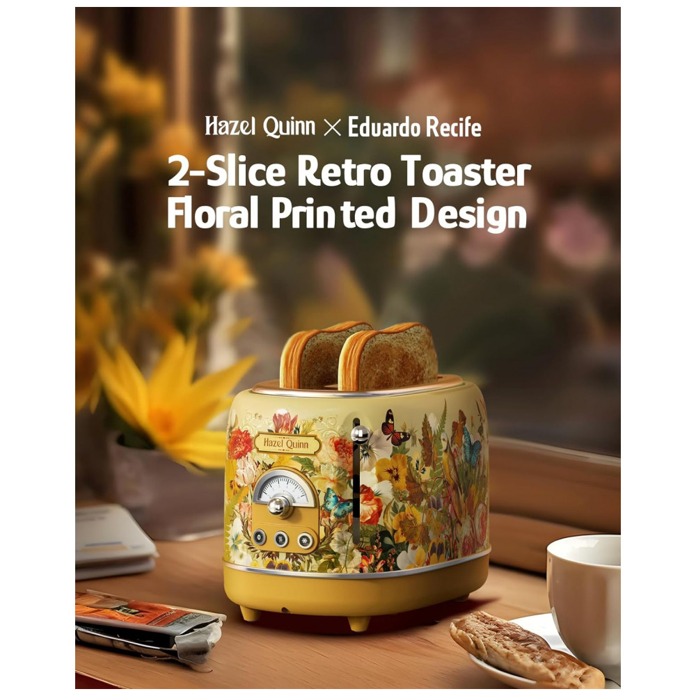 Torradeira elétrica retrô Hazel Quinn X Eduardo Recife 2 fatias inox 850W 6 níveis de tostagem e 3 funções, 110V